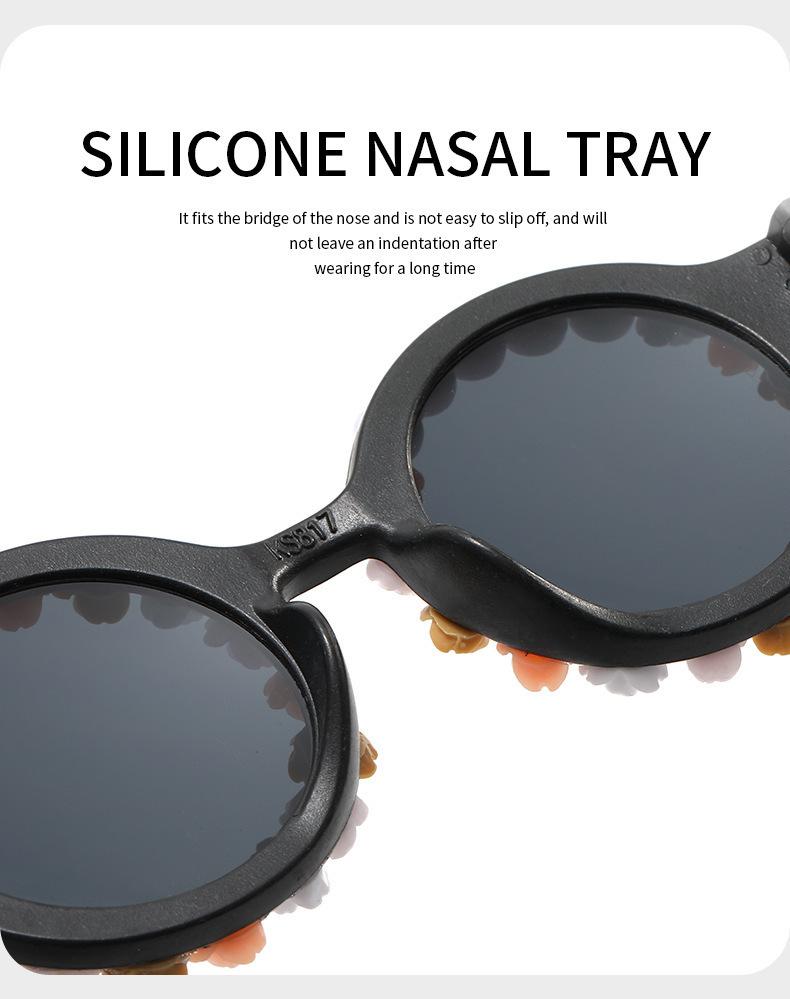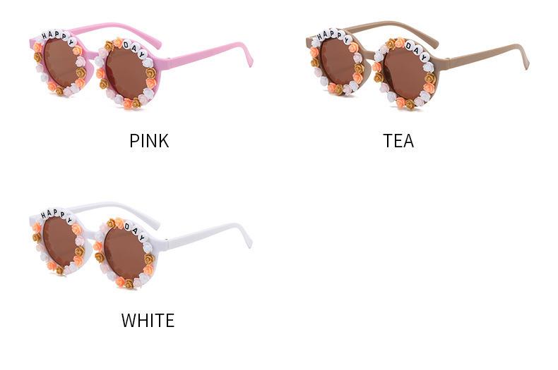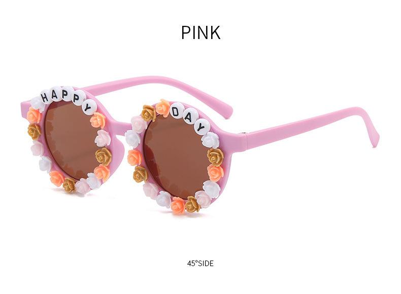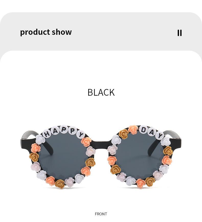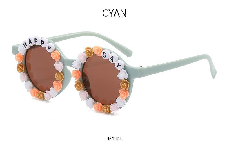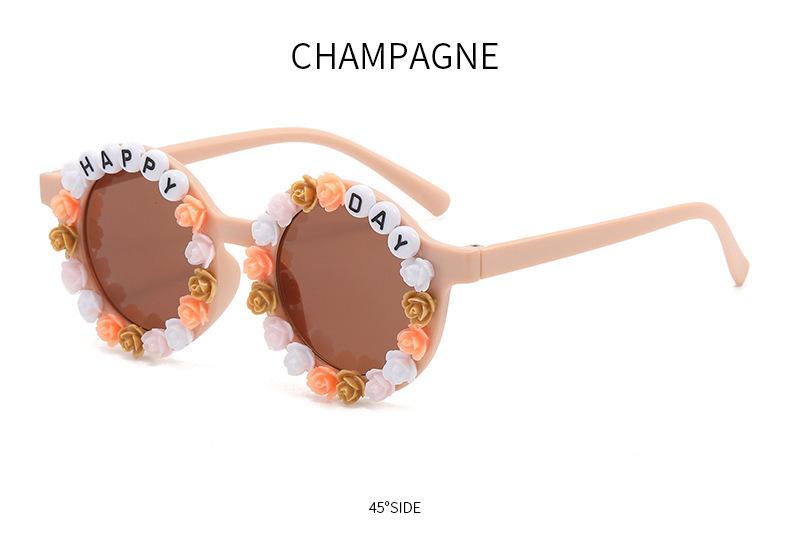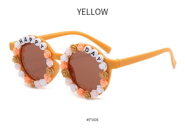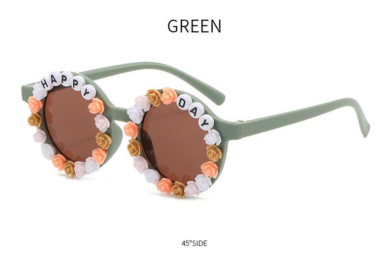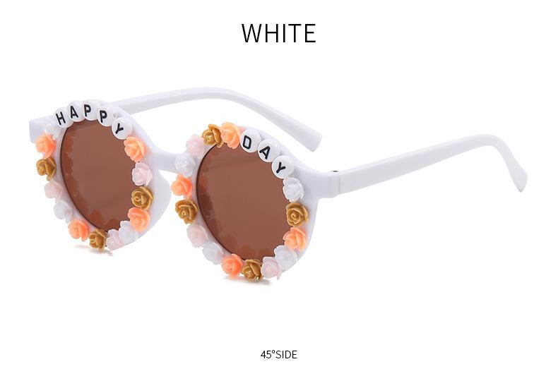 Gafas nuevas para niños 2023 con letras inglesas, lindas gafas de sol redondas para bebés, gafas de sol de flores para niños y niñas