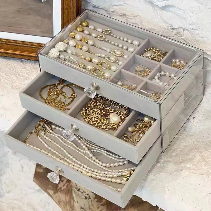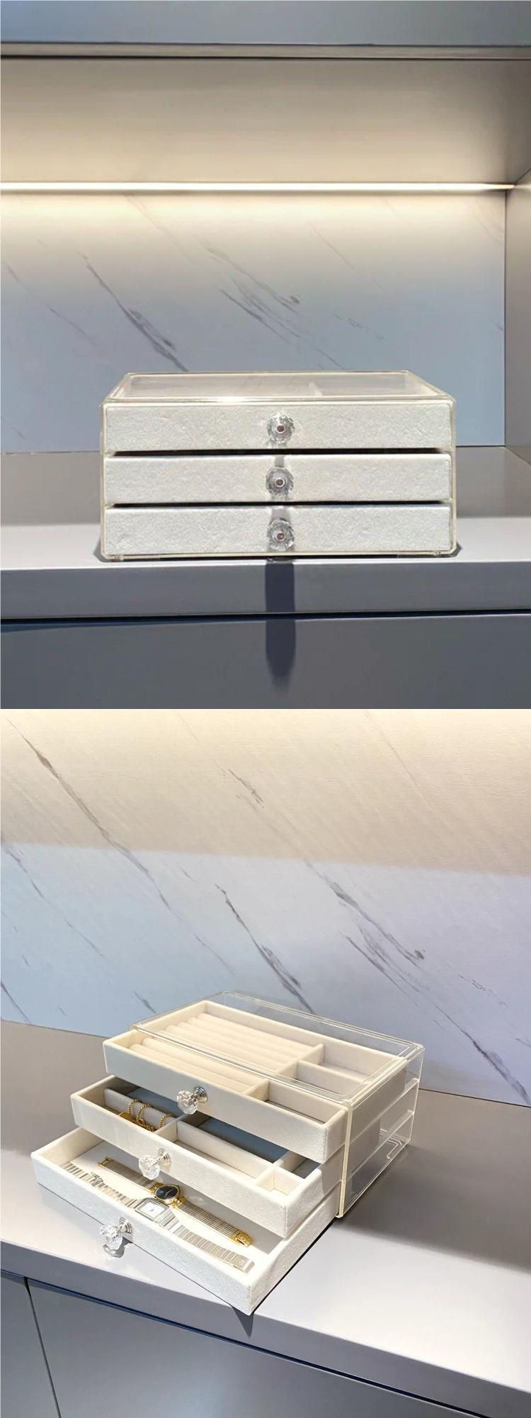 Caja de Almacenamiento de Joyas de Alta Gama Exquisita Acrílico Transparente Terciopelo Ins Anillos Aretes Pendientes Joyería Almacenamiento de Collares