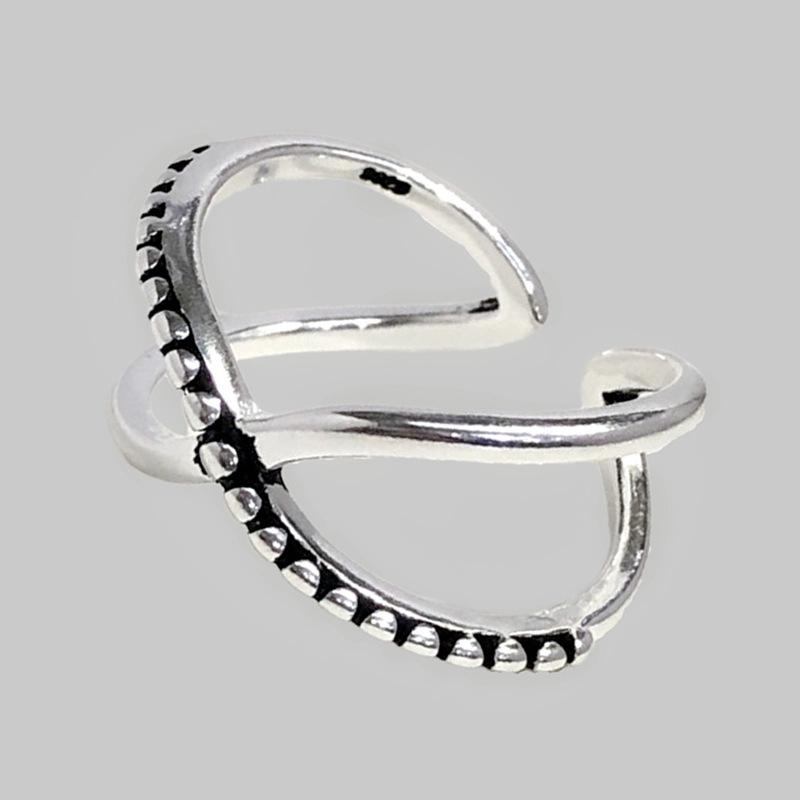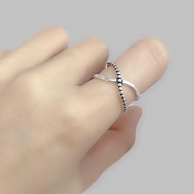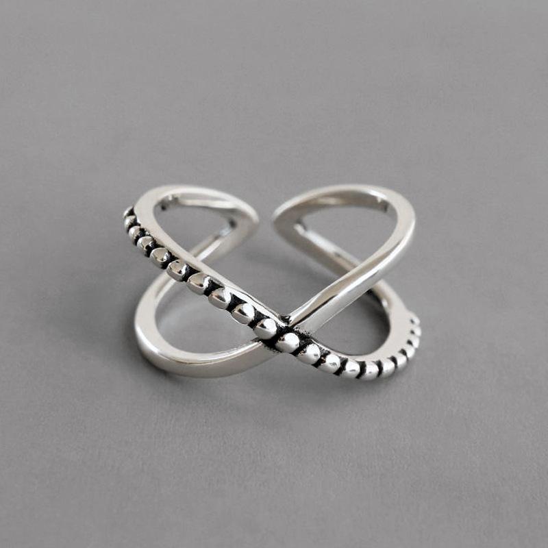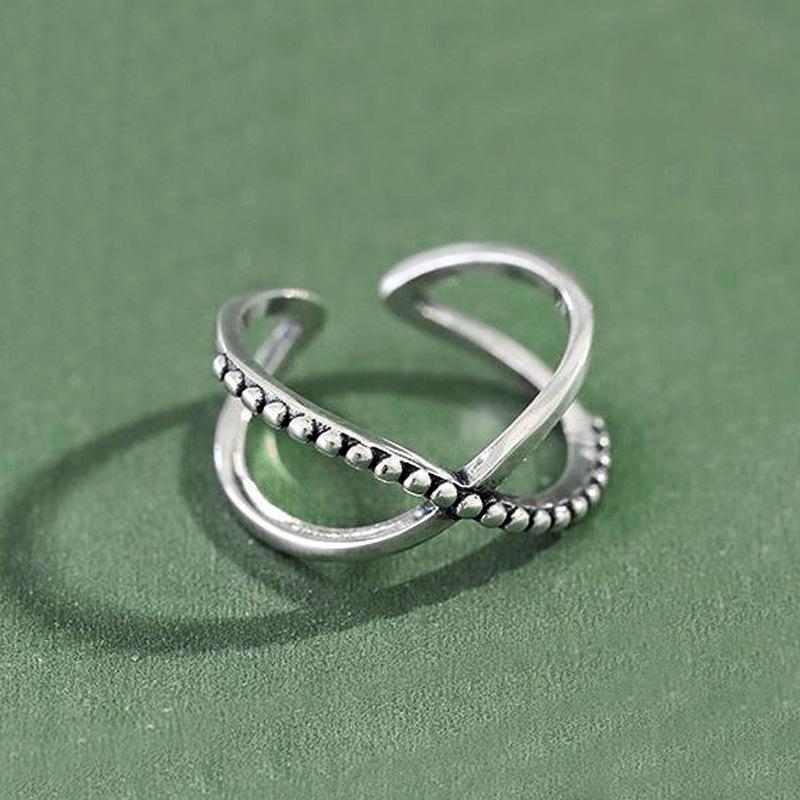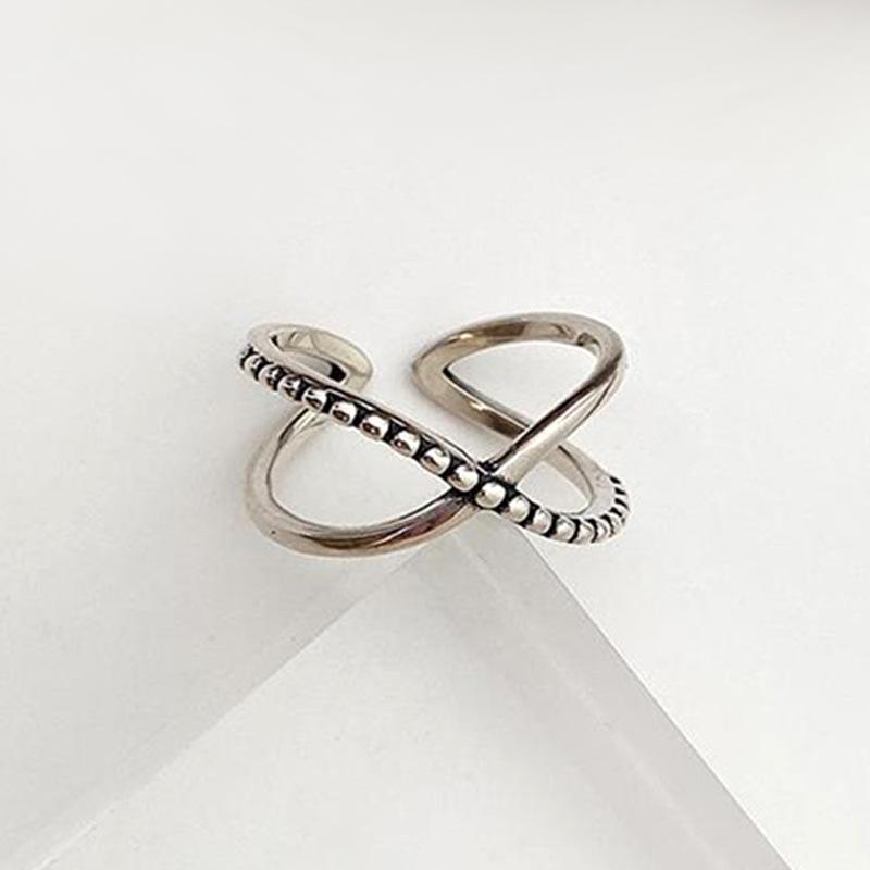 Anillo de cruz personalizado ins moda para mujer plateado retro viejo cruz multilínea abertura ajustable venta al por mayor