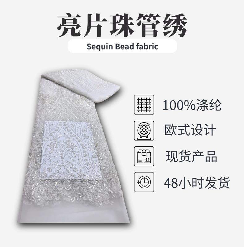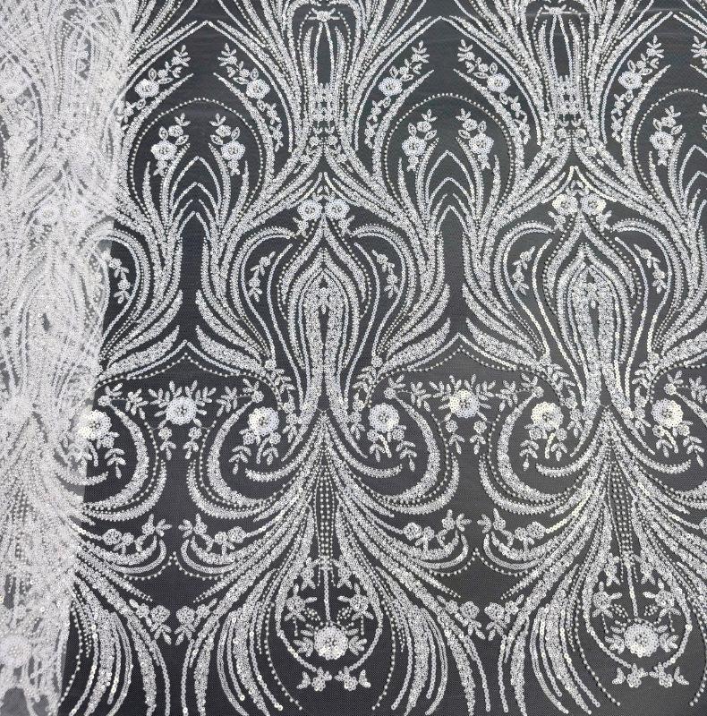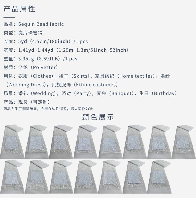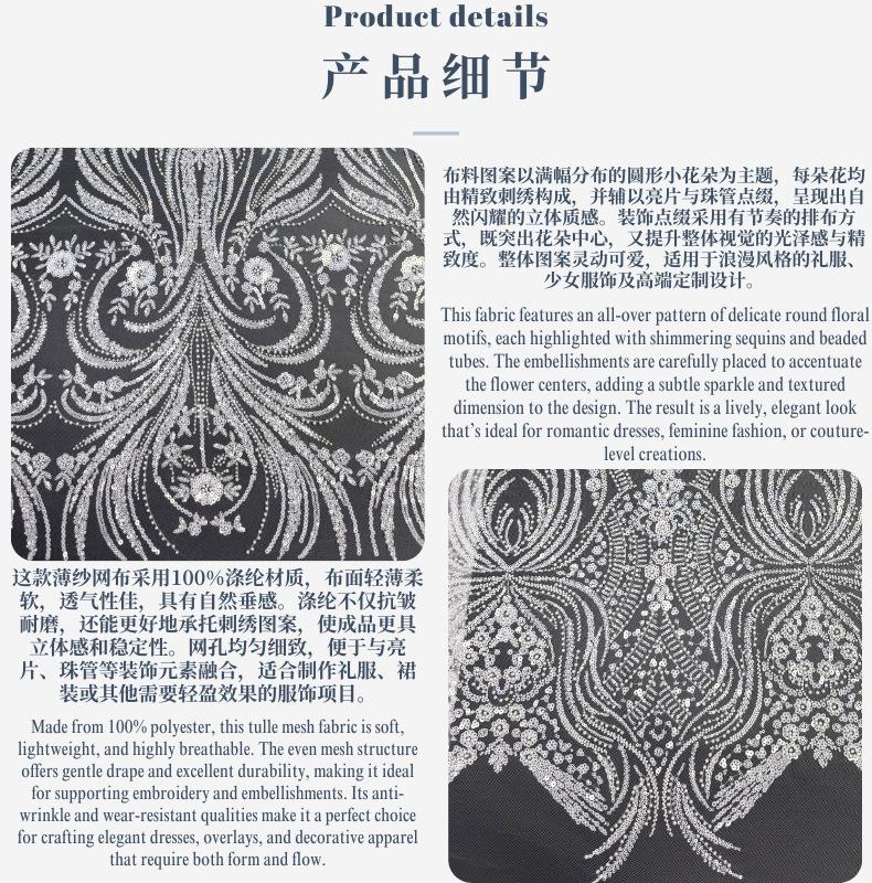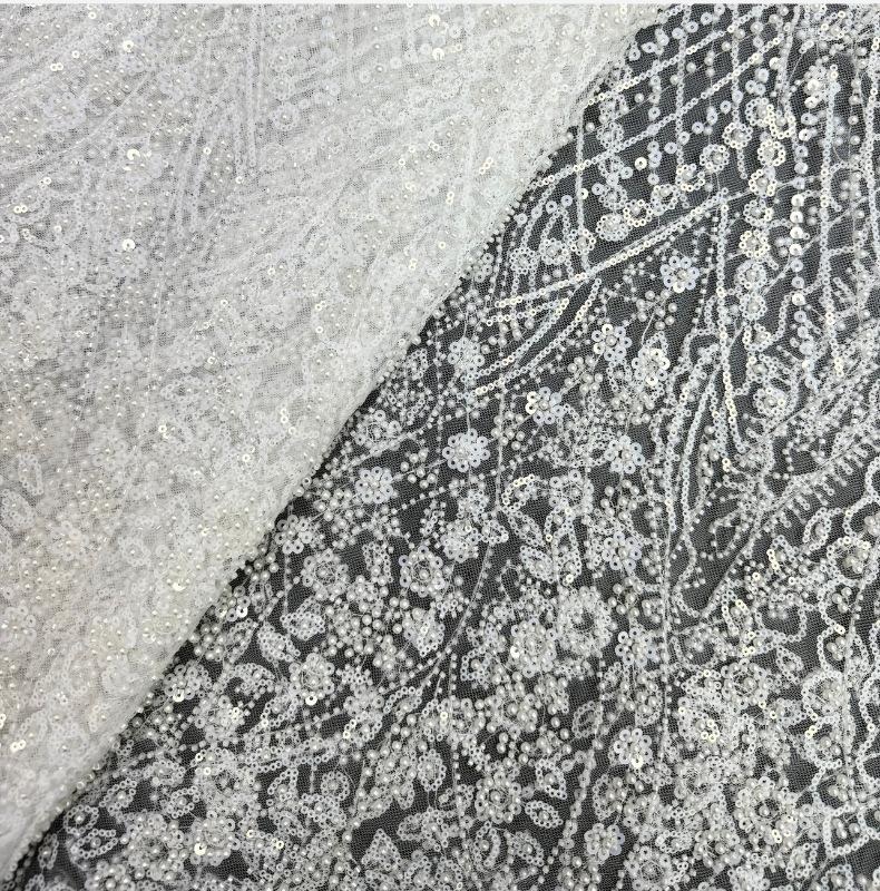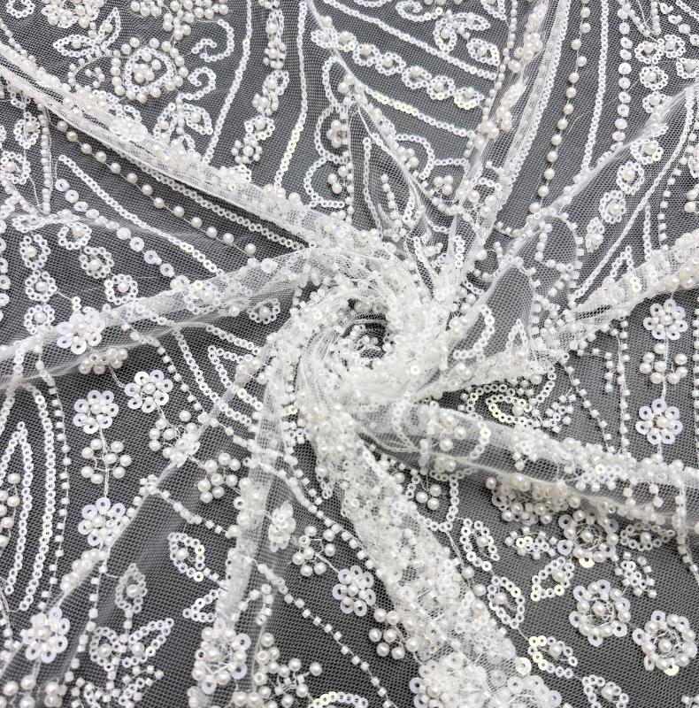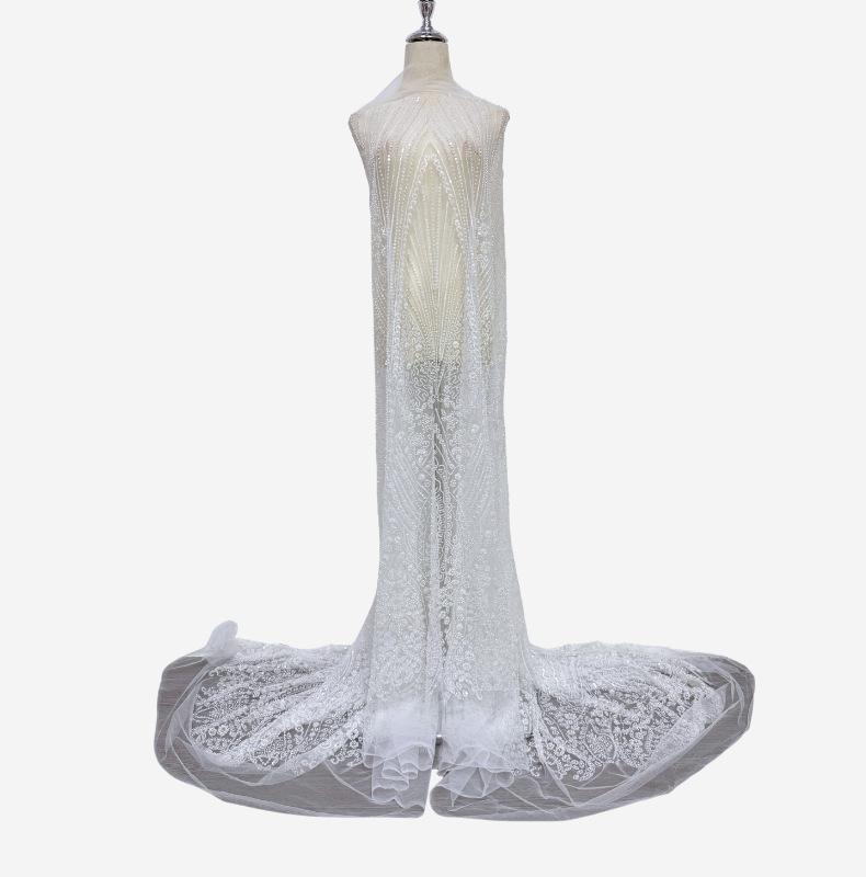 Tela de Malla de Encaje Bordado con Cuentas Blancas Multipatrón Bordado Pesado Vestido de Novia Vestido de Noche Escenario Ropa de Niños tissu