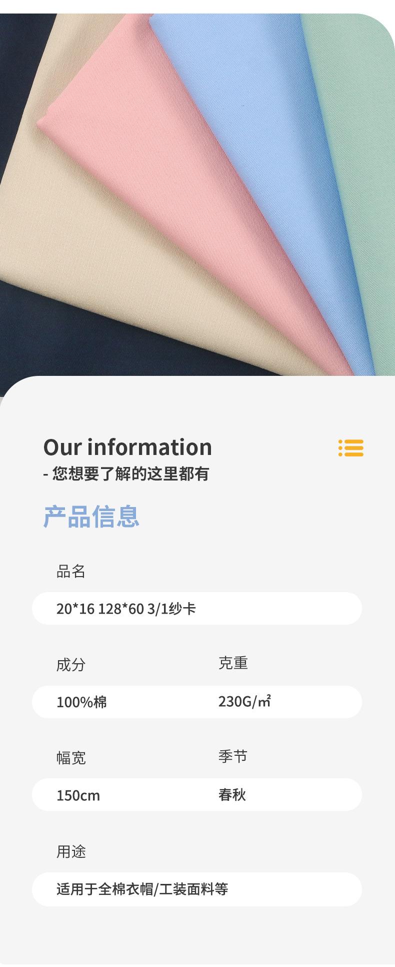 Tela de Sarga de Algodón Puro en Stock 20*16 128*60 Sarga 3/1 Hilo Cardado Algodón Puro Ropa de Trabajo Zapatos Sombreros Delantal Tela al por Mayor