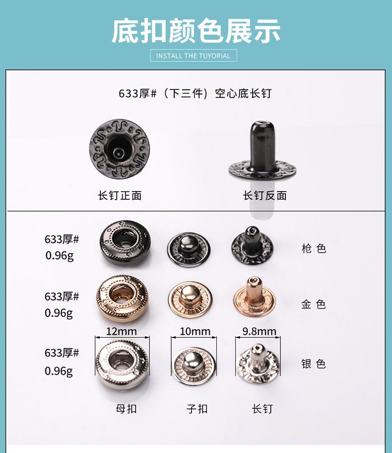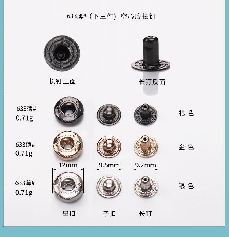 Juego de Botones a Presión de Cobre 633 Chaqueta Delgada con Solapa hacia Abajo Metal Botón a Presión Oculto Botón Dorado