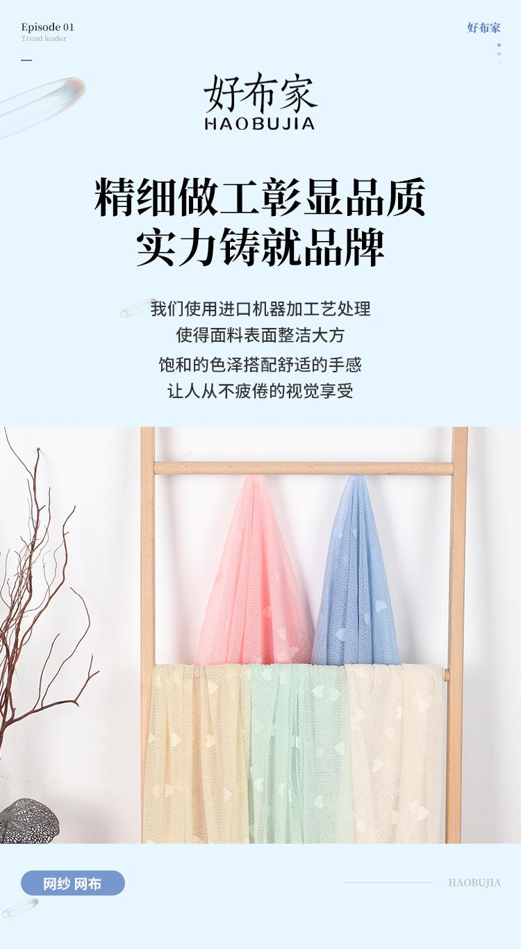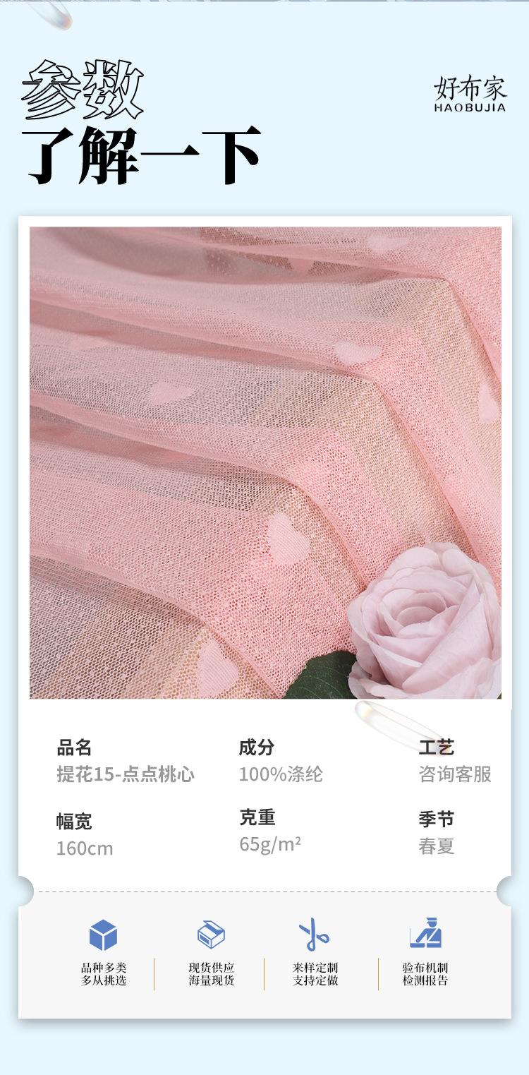 65g Poliéster Punto Corazón Durazno Poliéster Completo Falda Princesa Delgada a la Moda Gasa Malla Tejido de Punto por Urdimbre Malla de Moda