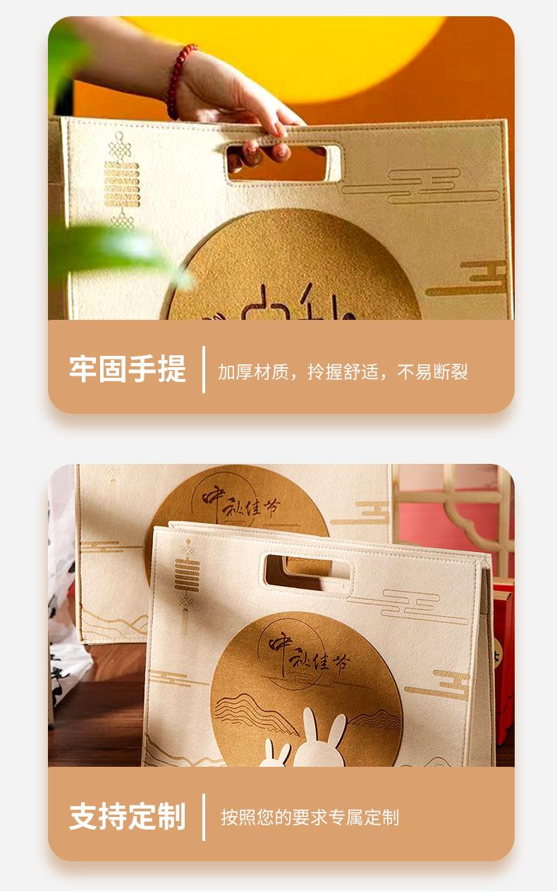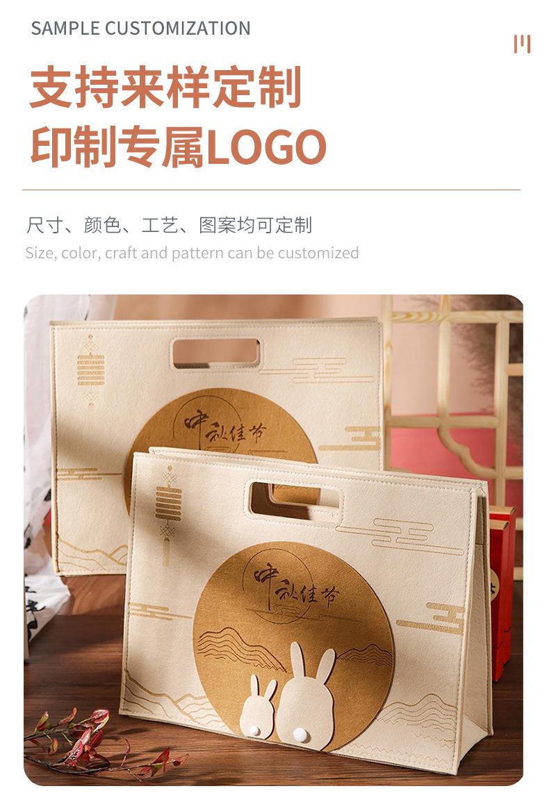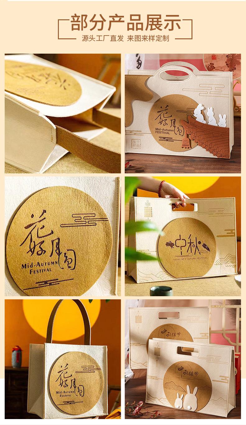 Bolsa de Fieltro Grande Personalizada de Fábrica para el Festival del Medio Otoño Logotipo Proceso de Transferencia de Calor Bolsa Tote de Fieltro Bolsa de Regalo de Fieltro para Pastel de Luna