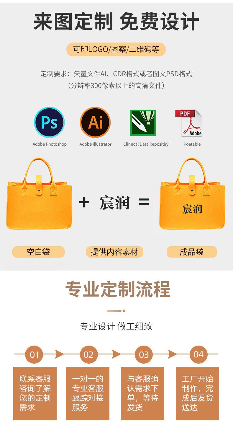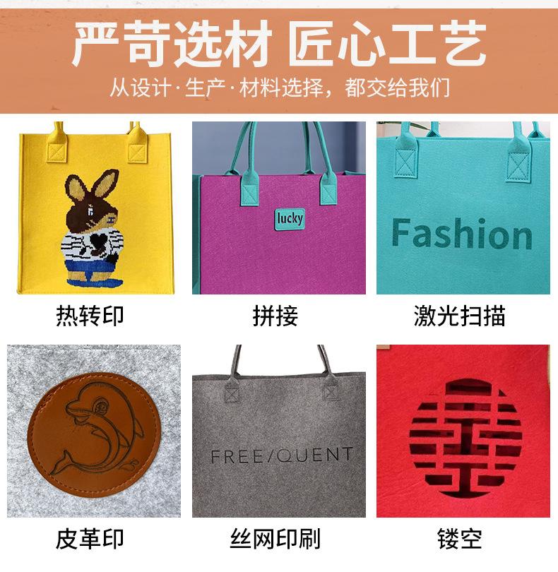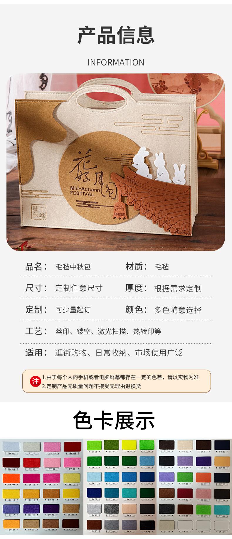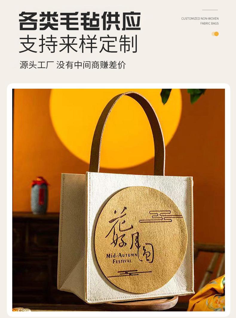 Bolsa de Fieltro Grande Personalizada de Fábrica para el Festival del Medio Otoño Logotipo Proceso de Transferencia de Calor Bolsa Tote de Fieltro Bolsa de Regalo de Fieltro para Pastel de Luna