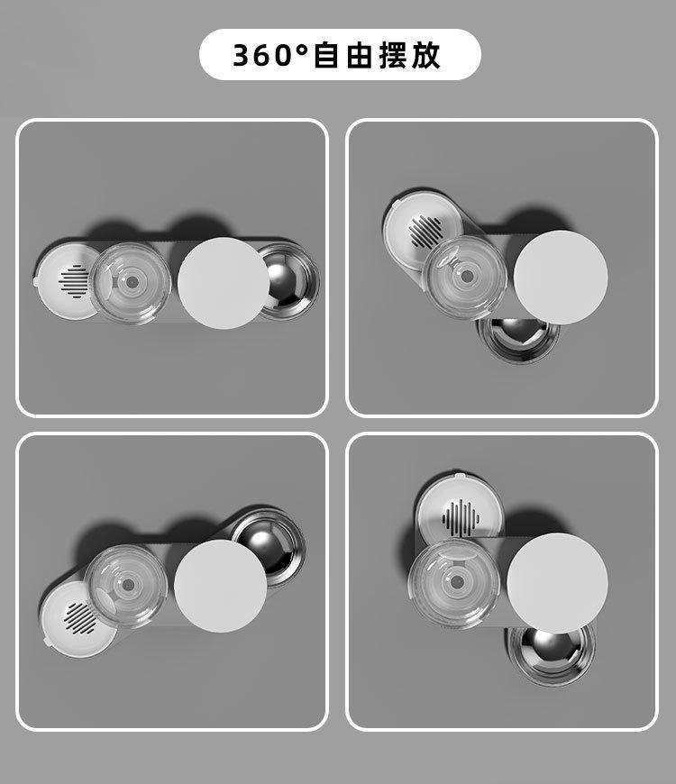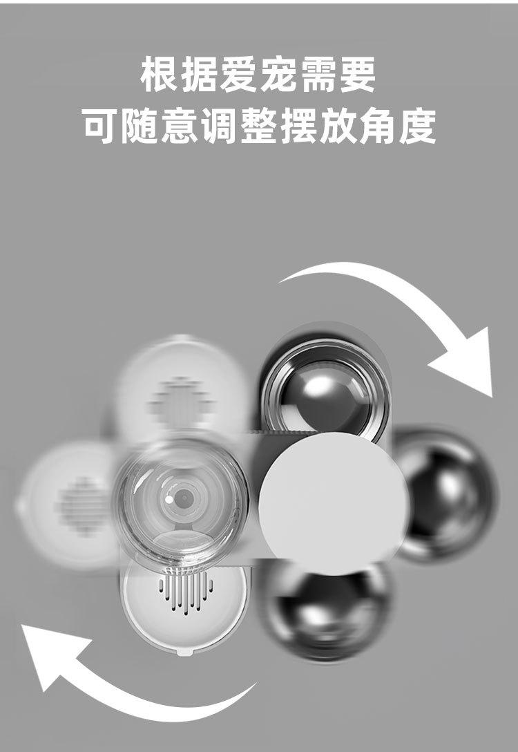 El cuenco de agua y el recipiente para comida pueden girar libremente 360 grados. Fácil de limpiar y desmontar. Alimente en áreas separadas para evitar la mezcla de comida sobrante y agua.