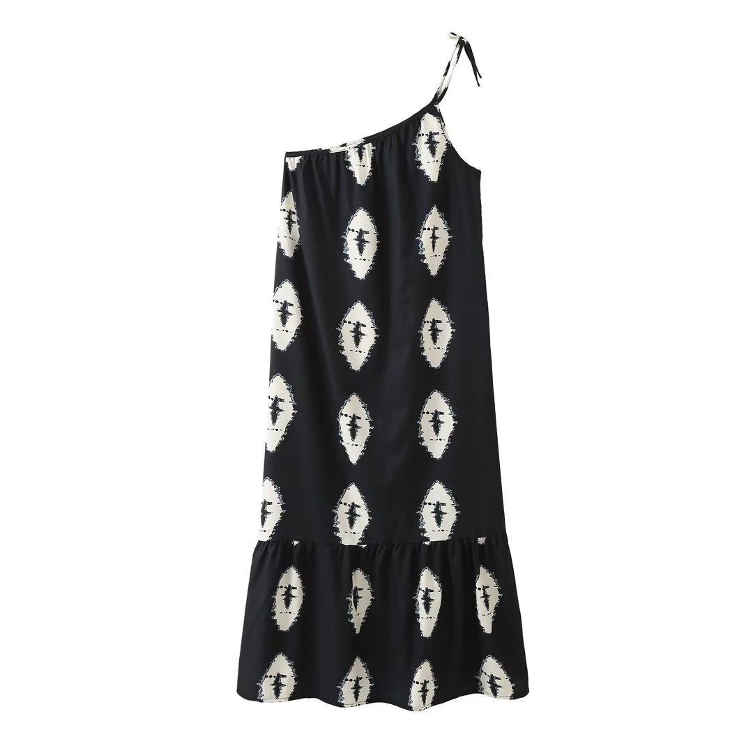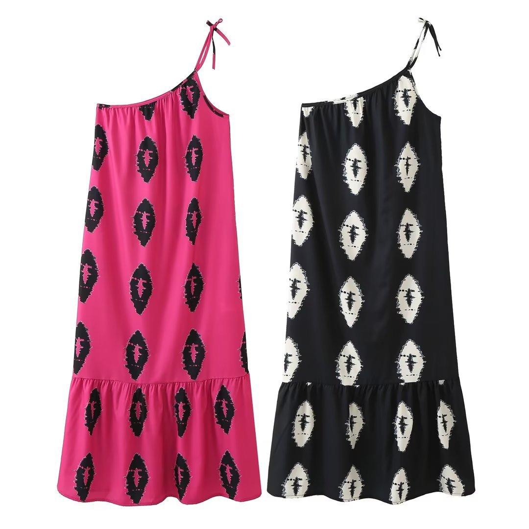 Venta al por mayor 2023 Verano nuevo estilo europeo y americano ropa de mujer estampado vestido asimétrico