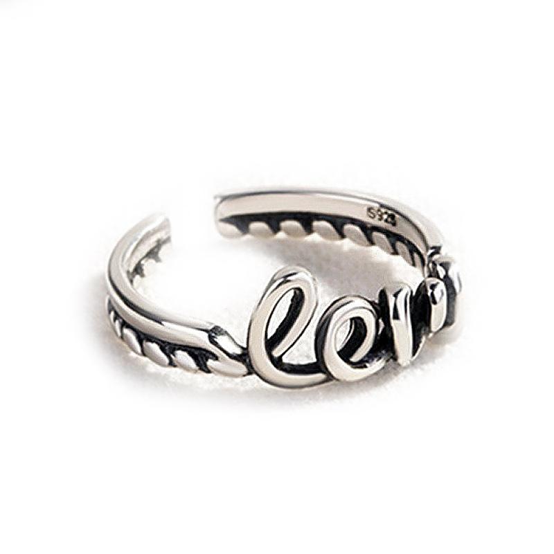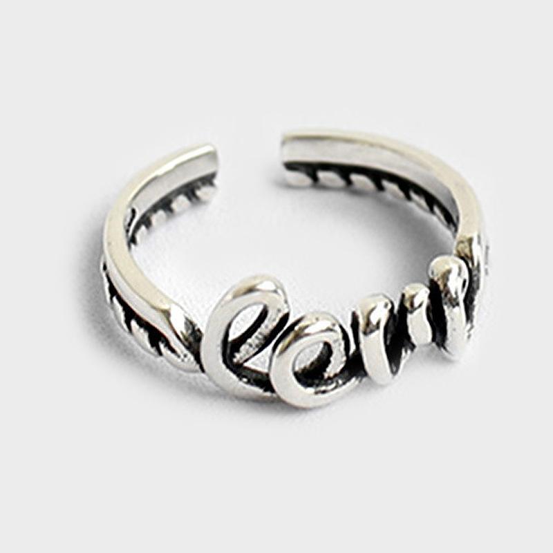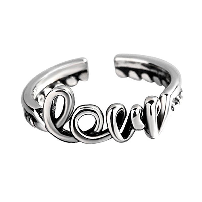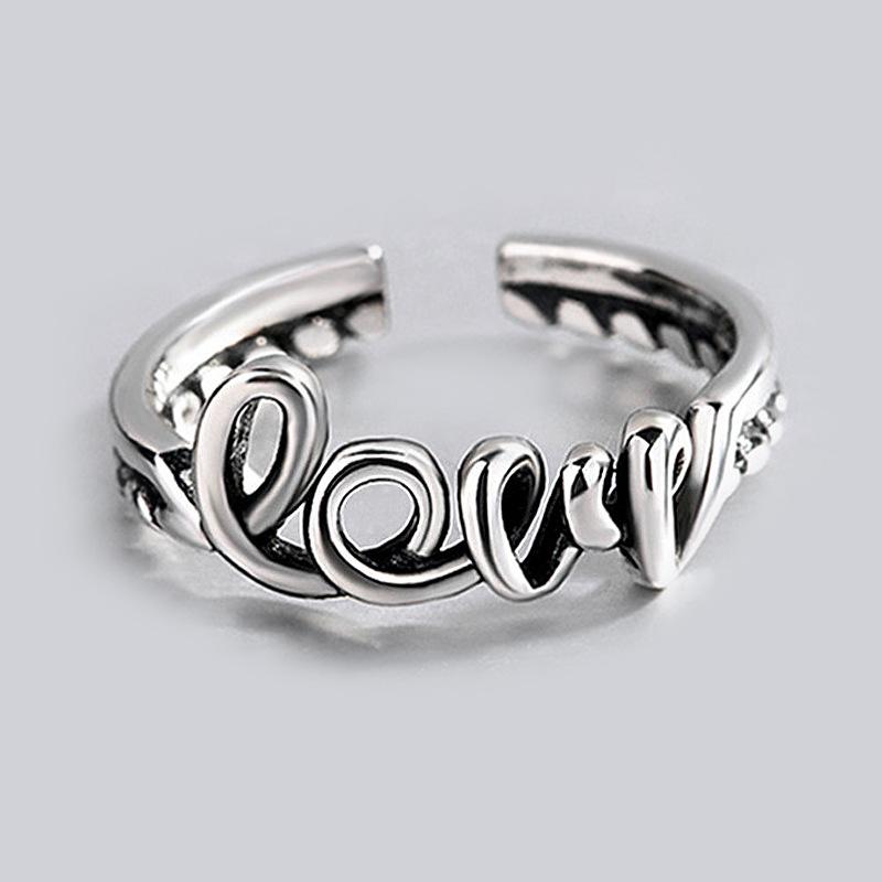 Anillo de amor plata coreana chapado retro diseño de personalidad antigua trenzado retorcido anillo de letras suministro de comercio electrónico