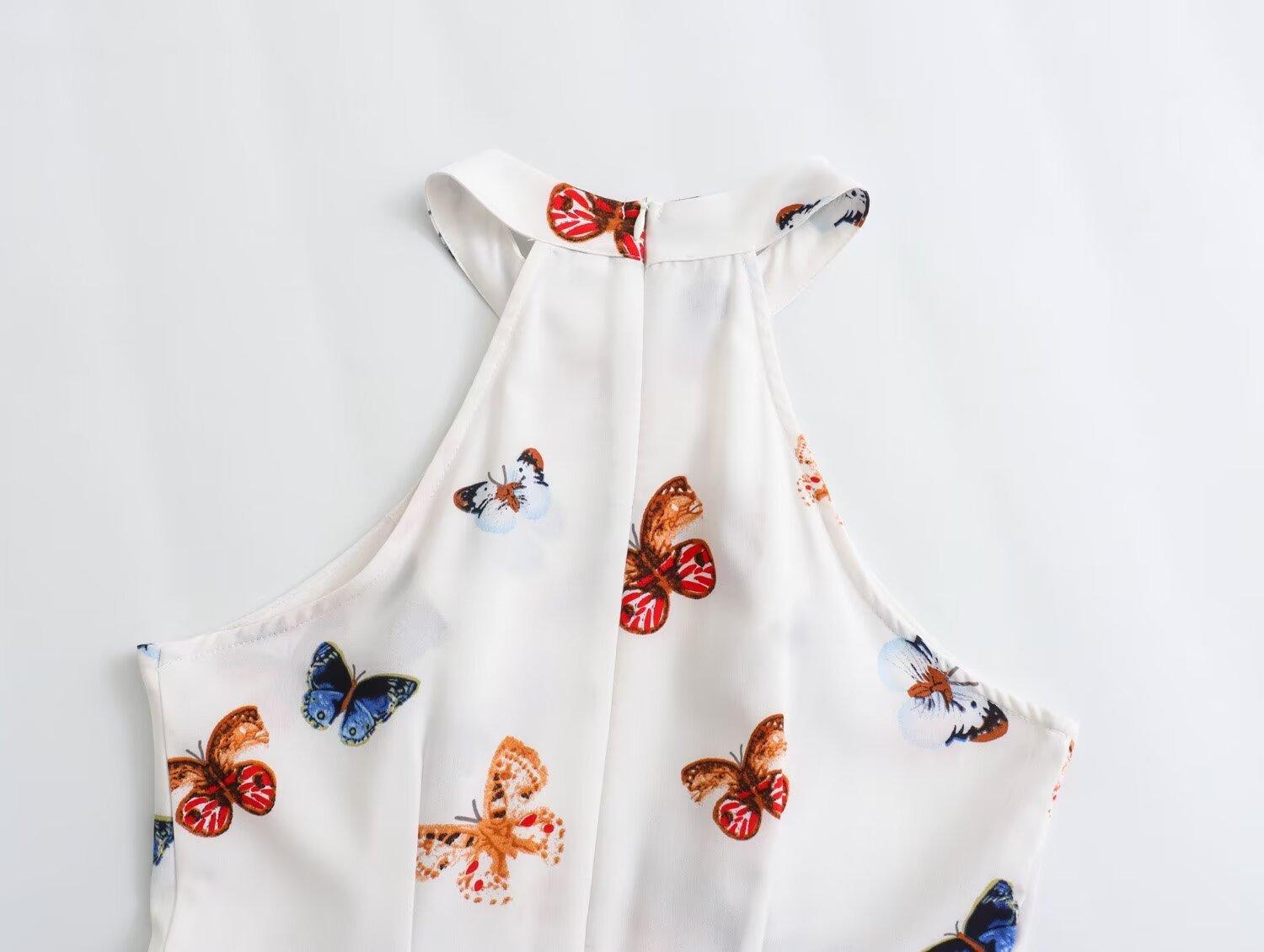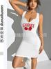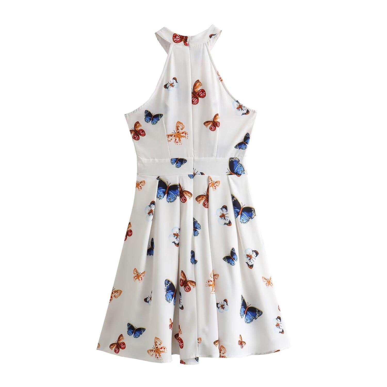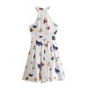 Vestido mini de mujer al por mayor 2024 nuevo estilo europeo y americano con cintura de mariposa y cuello halter
