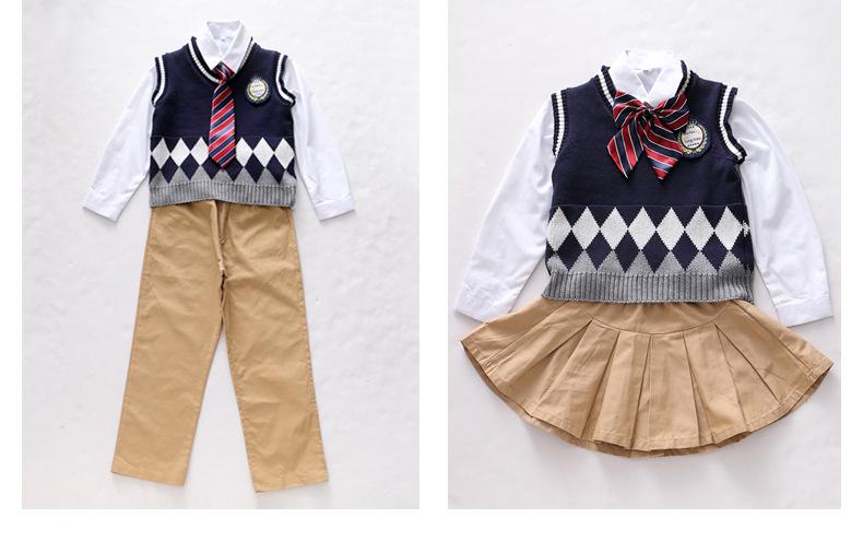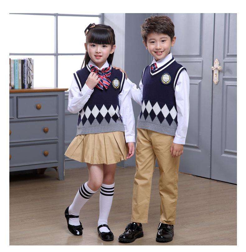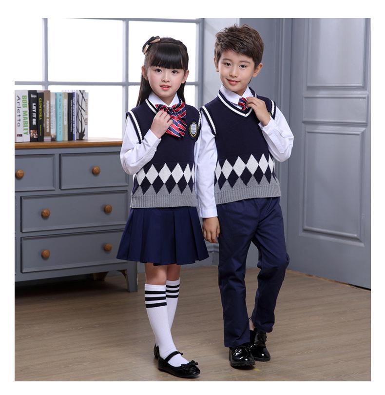 Ropa nueva para jardín de niños Primavera y Otoño Estilo británico Conjunto de uniforme escolar Otoño e Invierno Uniforme de escuela primaria Uniforme de clase para niños