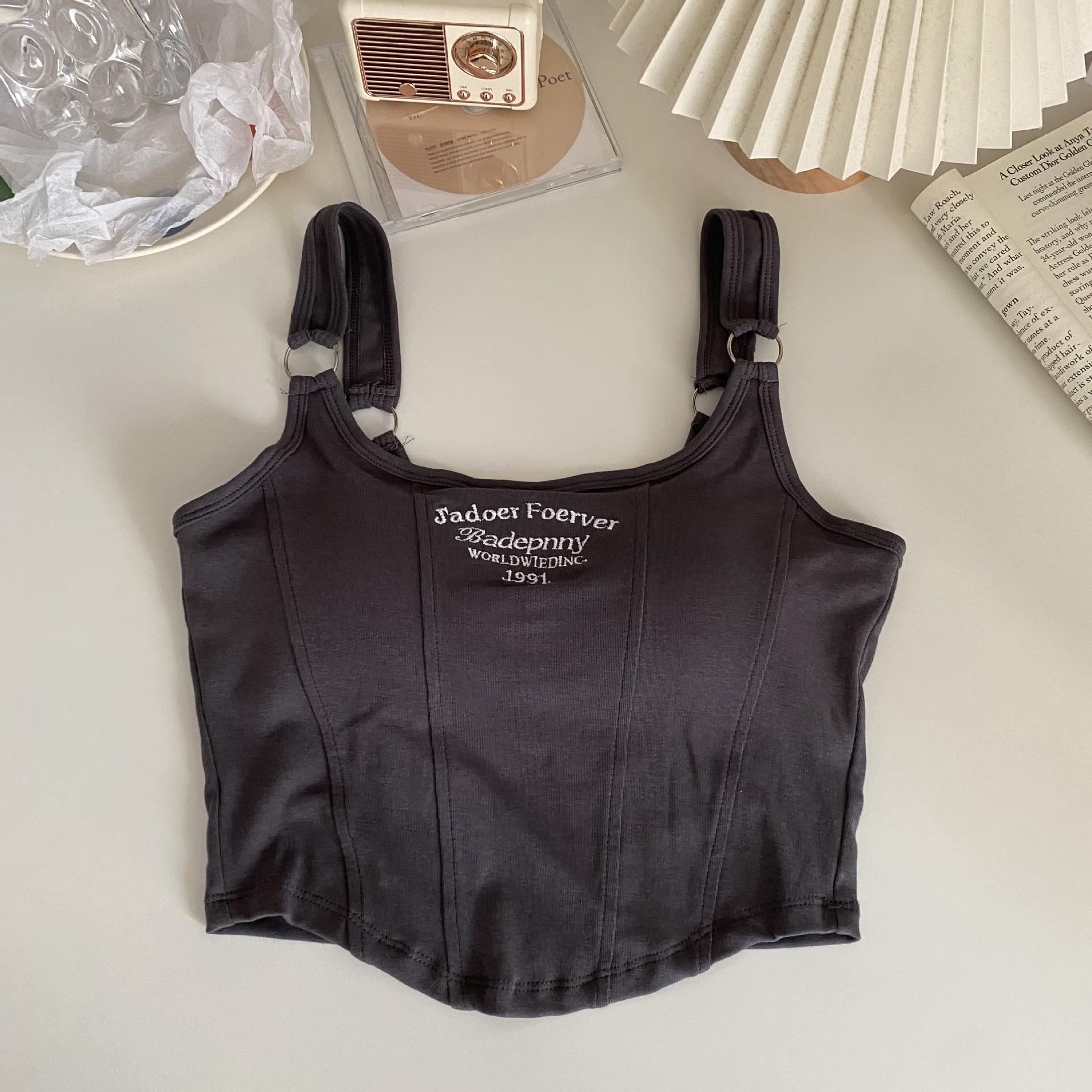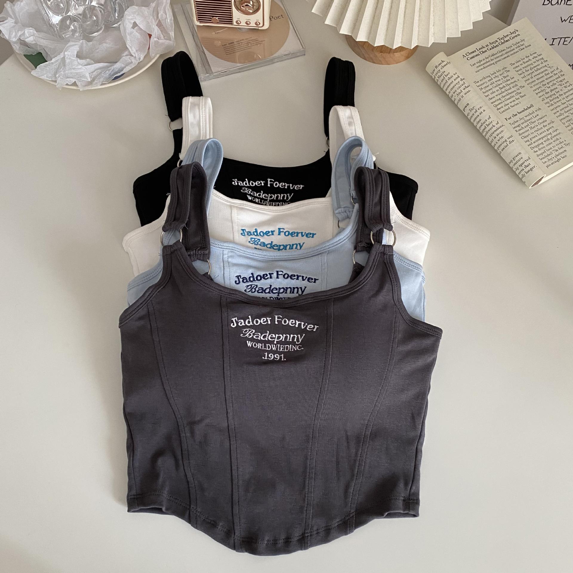Nuevo Camisola Pequeña Estampada con Letra de Deseo Puro para Mujer Ropa Interior Algodón Puro Ropa de Chica Caliente Conjunto Delgado Corto de Dos Piezas