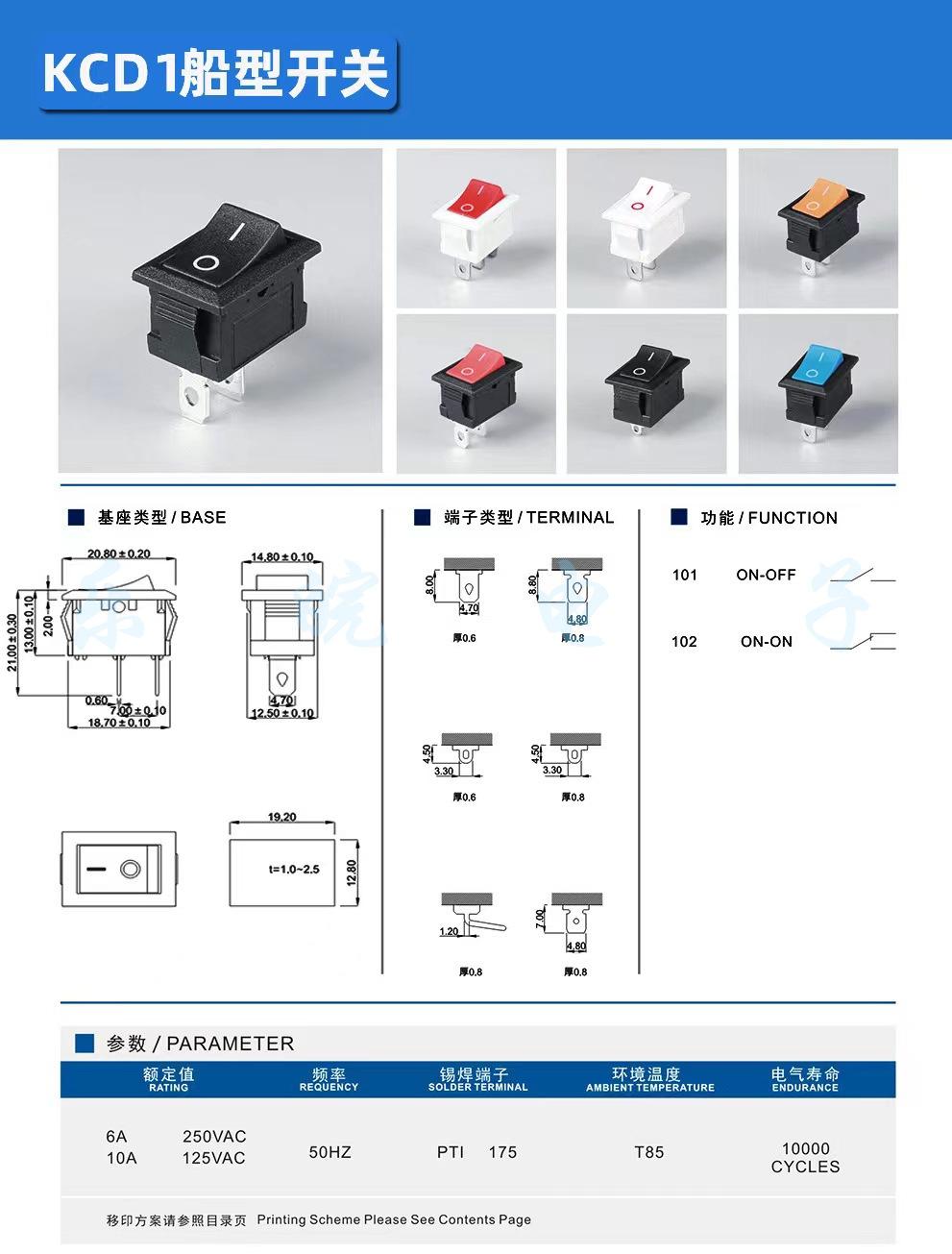 Interruptor Basculante KCD1-101 Negro 2 Pines 2 Posiciones 15*21mm Rojo Dos Pines Interruptor de Lámpara Dispensador de Agua