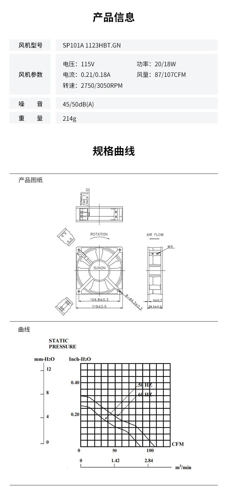 Sp101A 1123Hbt.Gn Ventilador de Refrigeración Sunon Jiann Agente Estándar Flujo Axial Viento