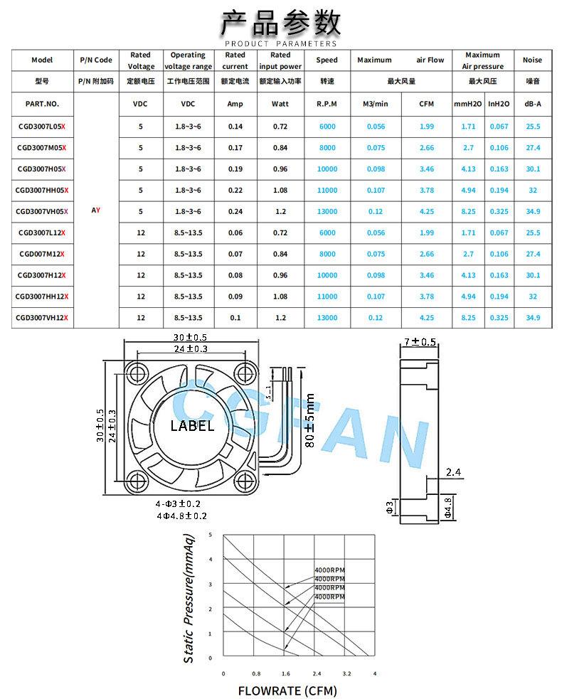 Ventilador de Refrigeración CC sin Escobillas Micro Silencioso DC3007 5V para Computadora CPU Cámara Ventilador de Escape de Refrigeración