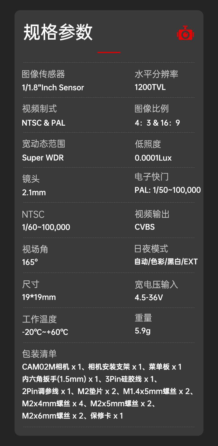 Droneer Fpv Cámara Competitiva Visión Nocturna Cámara de Luz Negra Cam02M