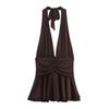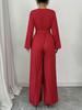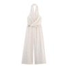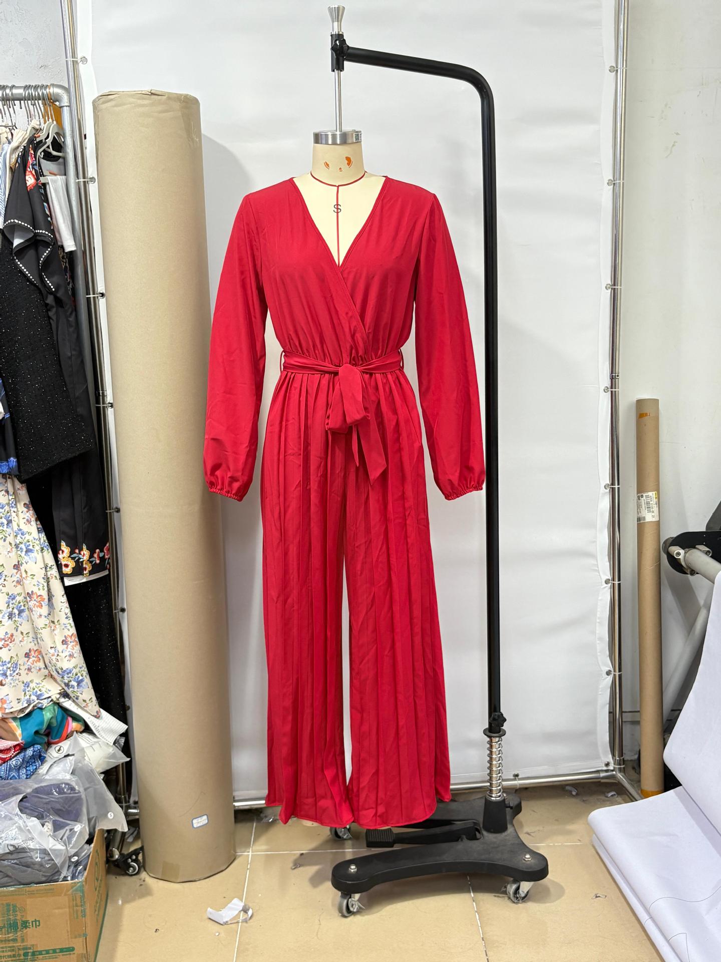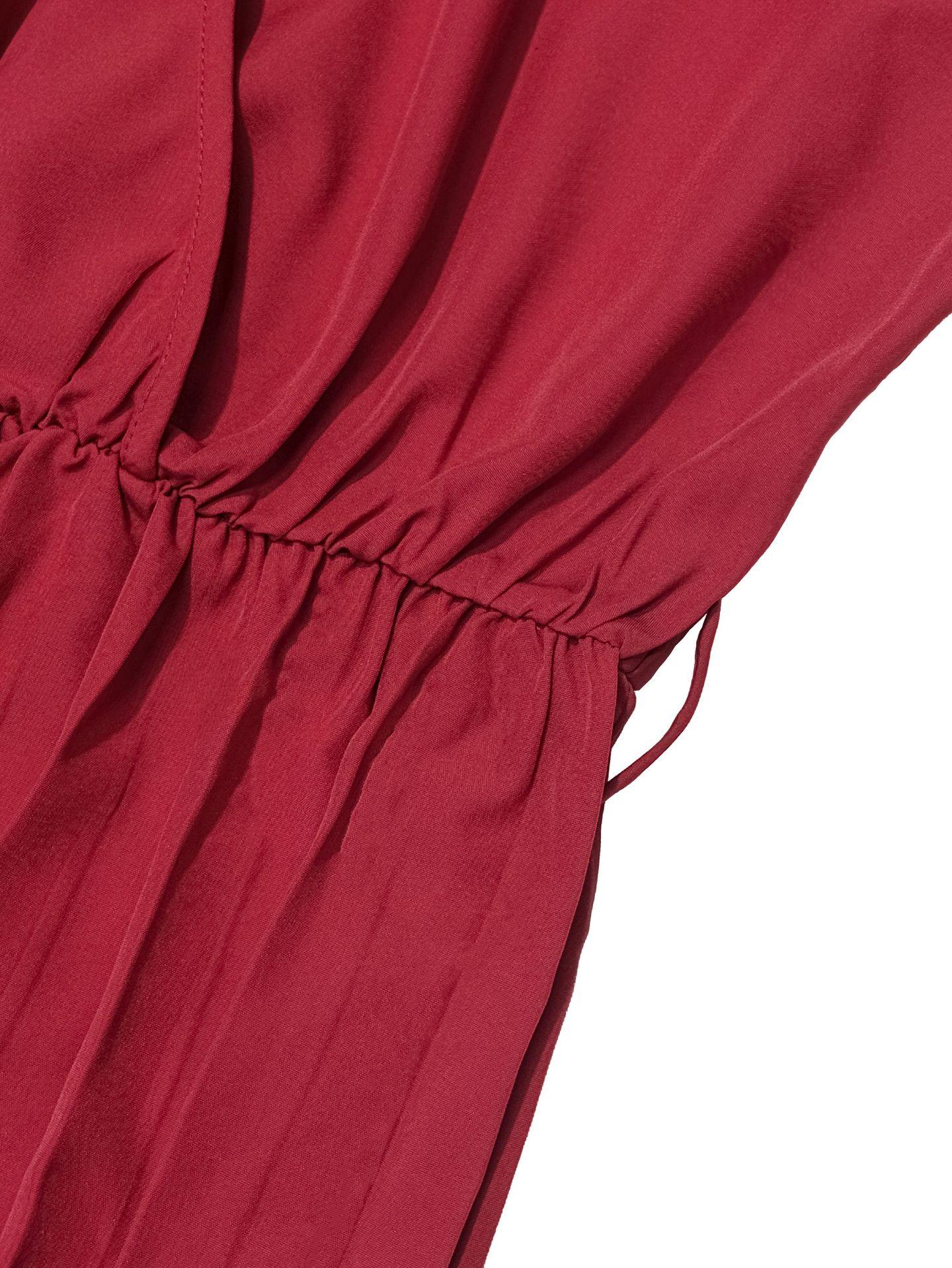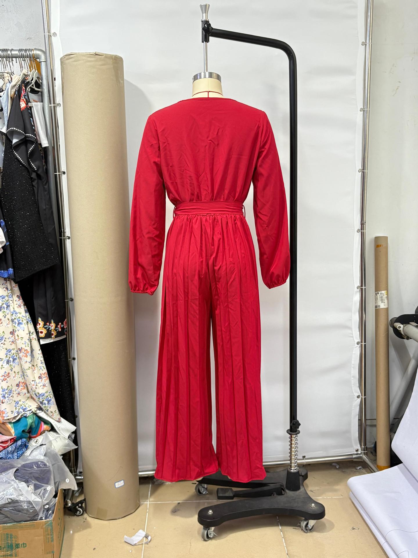 2025 Transfronterizo Europeo y Americano Nuevo Primavera Casual Cordones Color Sólido Cruzado Cintura Alta Cuello en V Mono Plisado