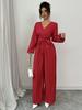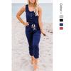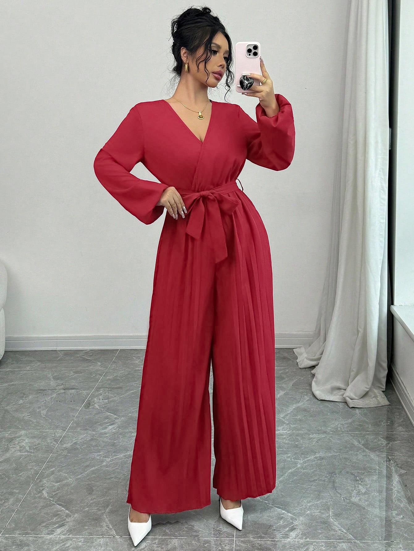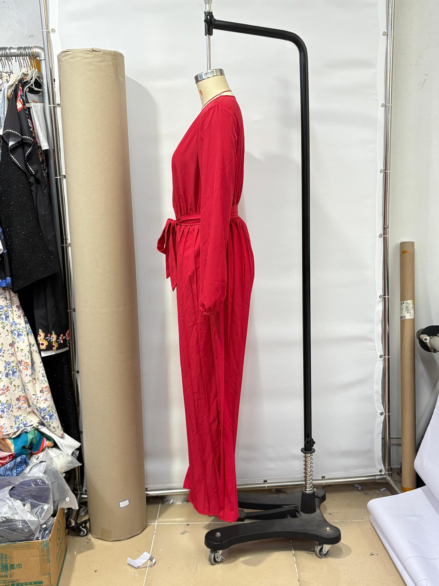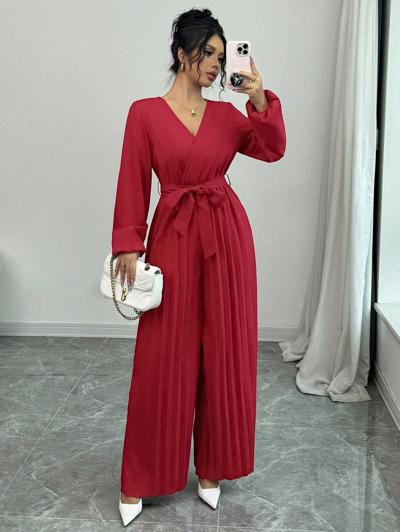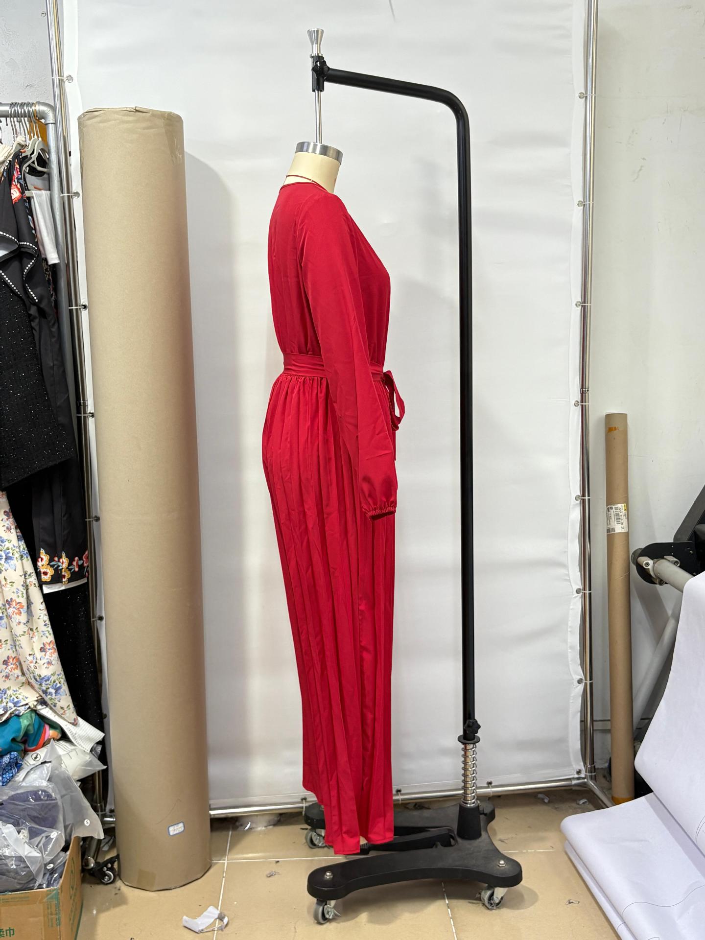 2025 Transfronterizo Europeo y Americano Nuevo Primavera Casual Cordones Color Sólido Cruzado Cintura Alta Cuello en V Mono Plisado