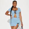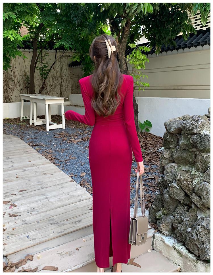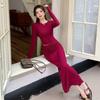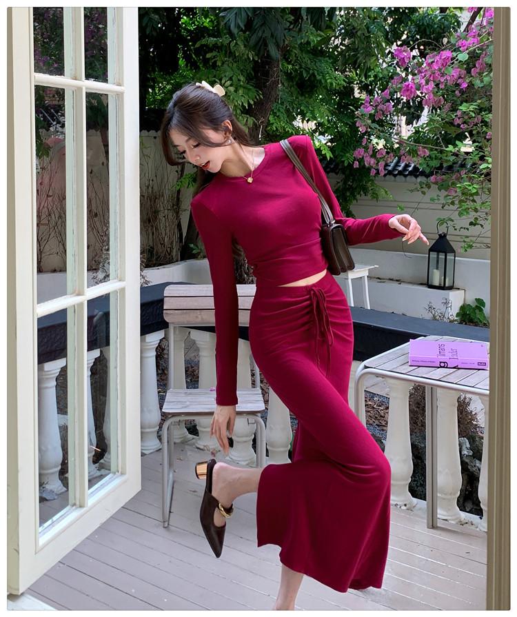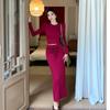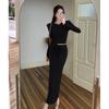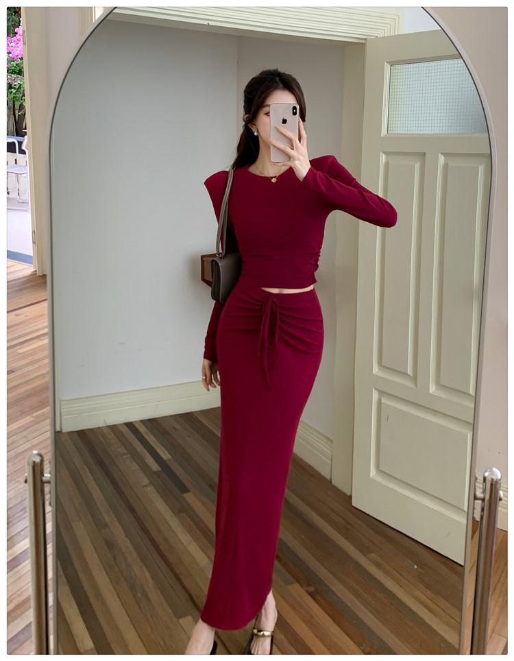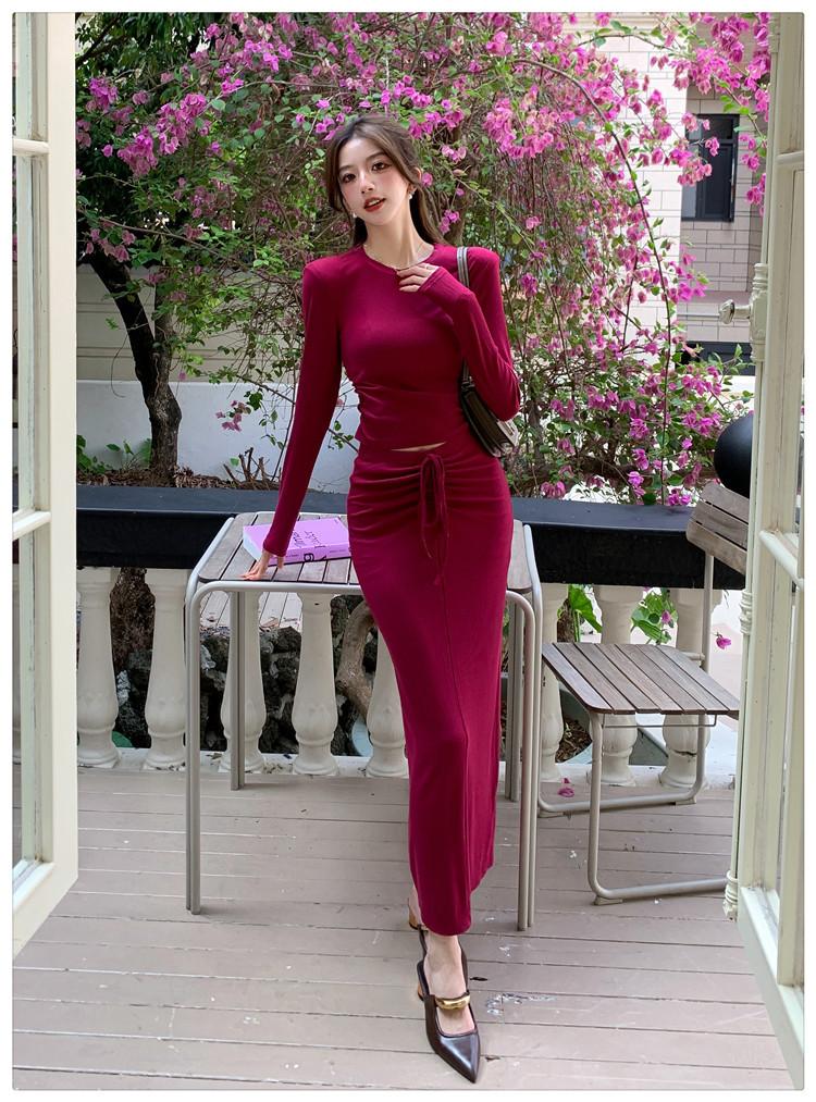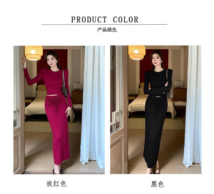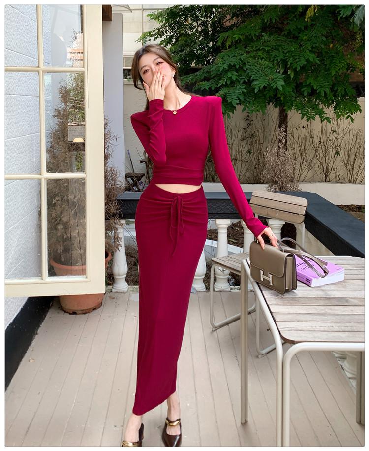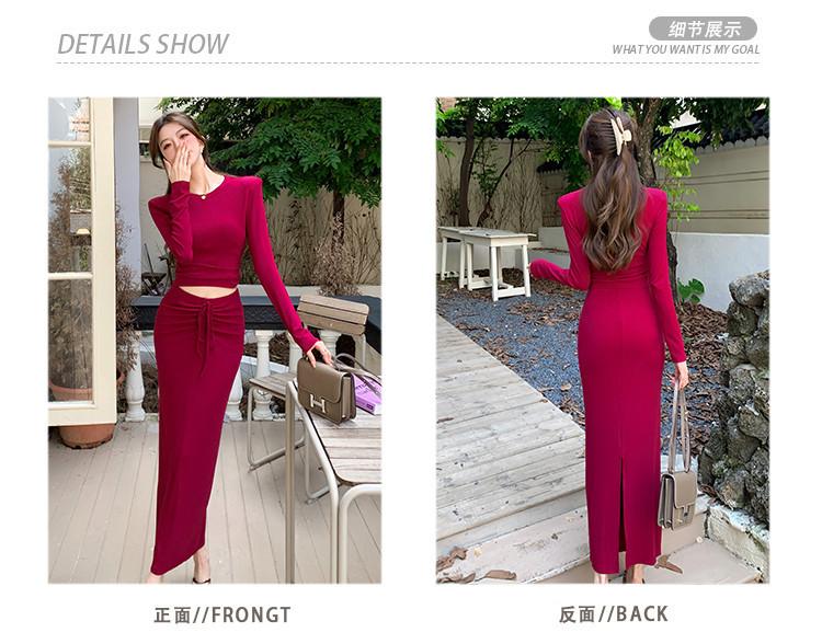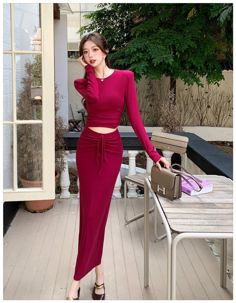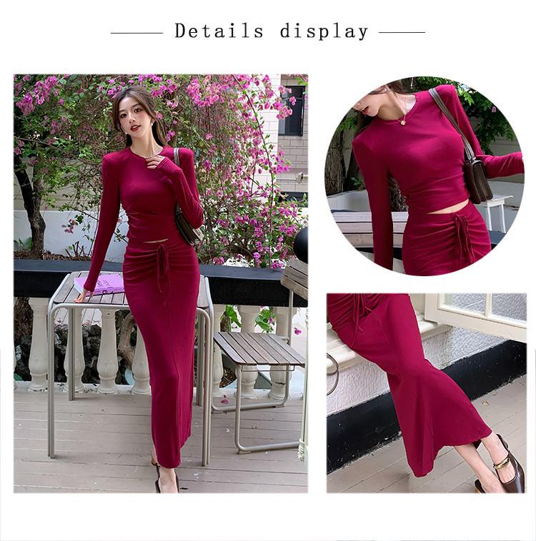 Conjunto de dos piezas de temperamento de chica sexy pura y transfronteriza 2025 para mujer, top de manga larga a la moda de otoño, conjunto de falda midi ajustada