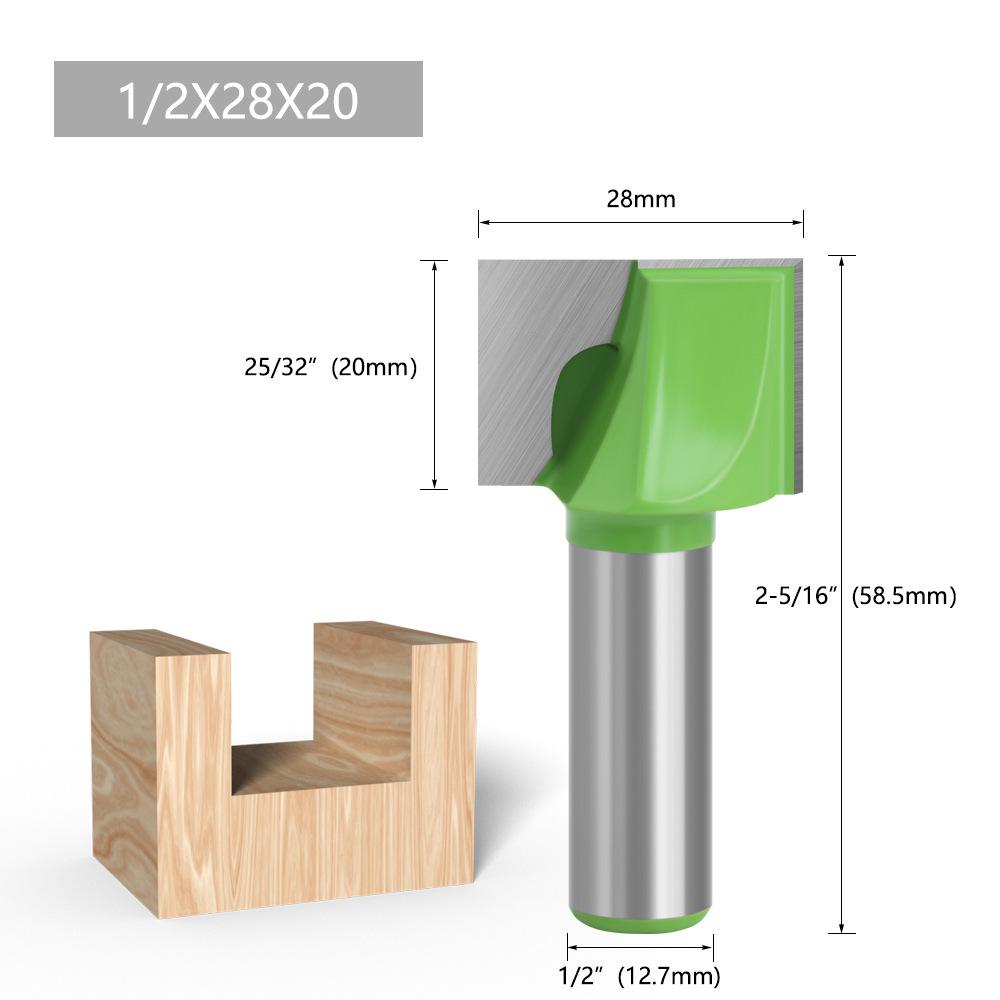 Los mangos de las fresas para carpintería son: 3 mm, 6 mm, 1/4" (6,35 mm), 8 mm, 12 mm, 1/2" (12,7 mm)