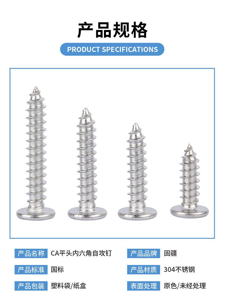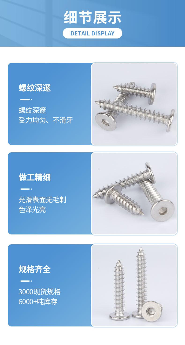 Tornillos Autoperforantes de Acero Inoxidable 304 de Cabeza Plana y Zócalo Hexagonal Ca Tornillos Autoperforantes de Cabeza Delgada y Zócalo Hexagonal M2-M6 Venta al por Mayor