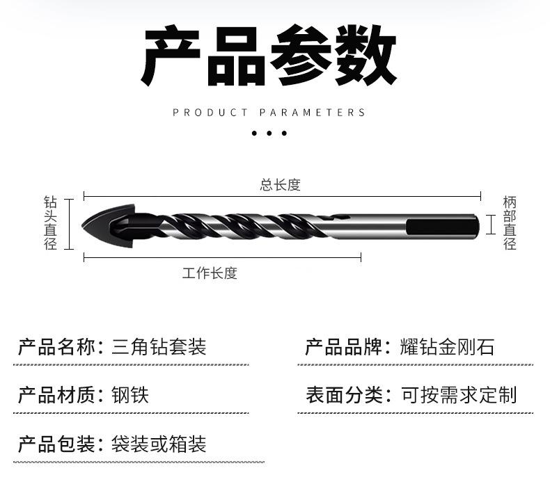 Juego de brocas triangulares transfronterizas broca para sierra de corona de diamante para cerámica porcelana vástago triangular perforación de piedra de pared broca helicoidal