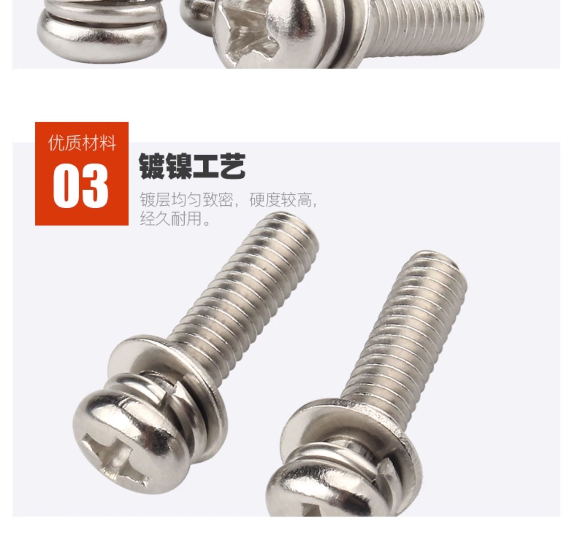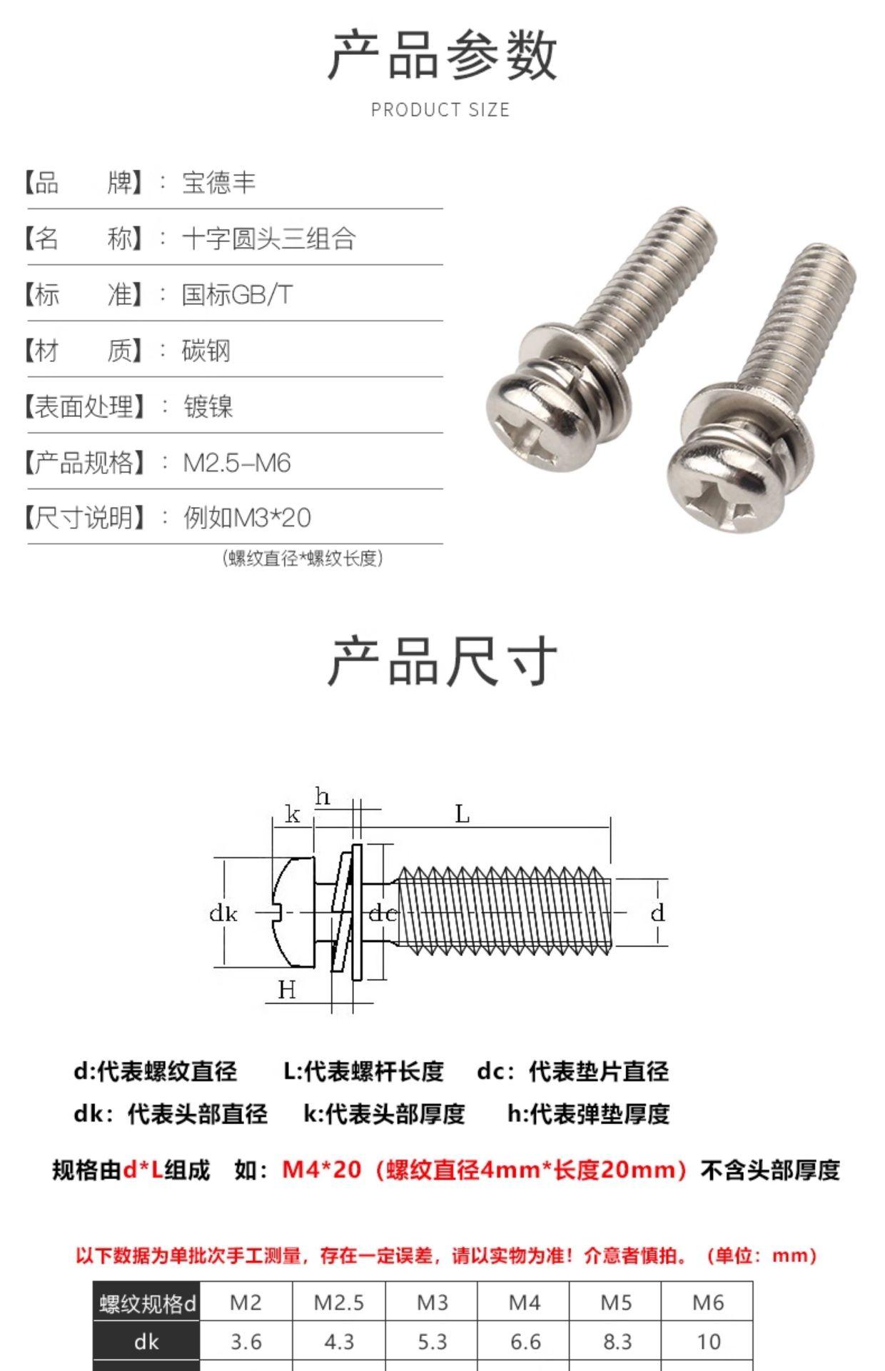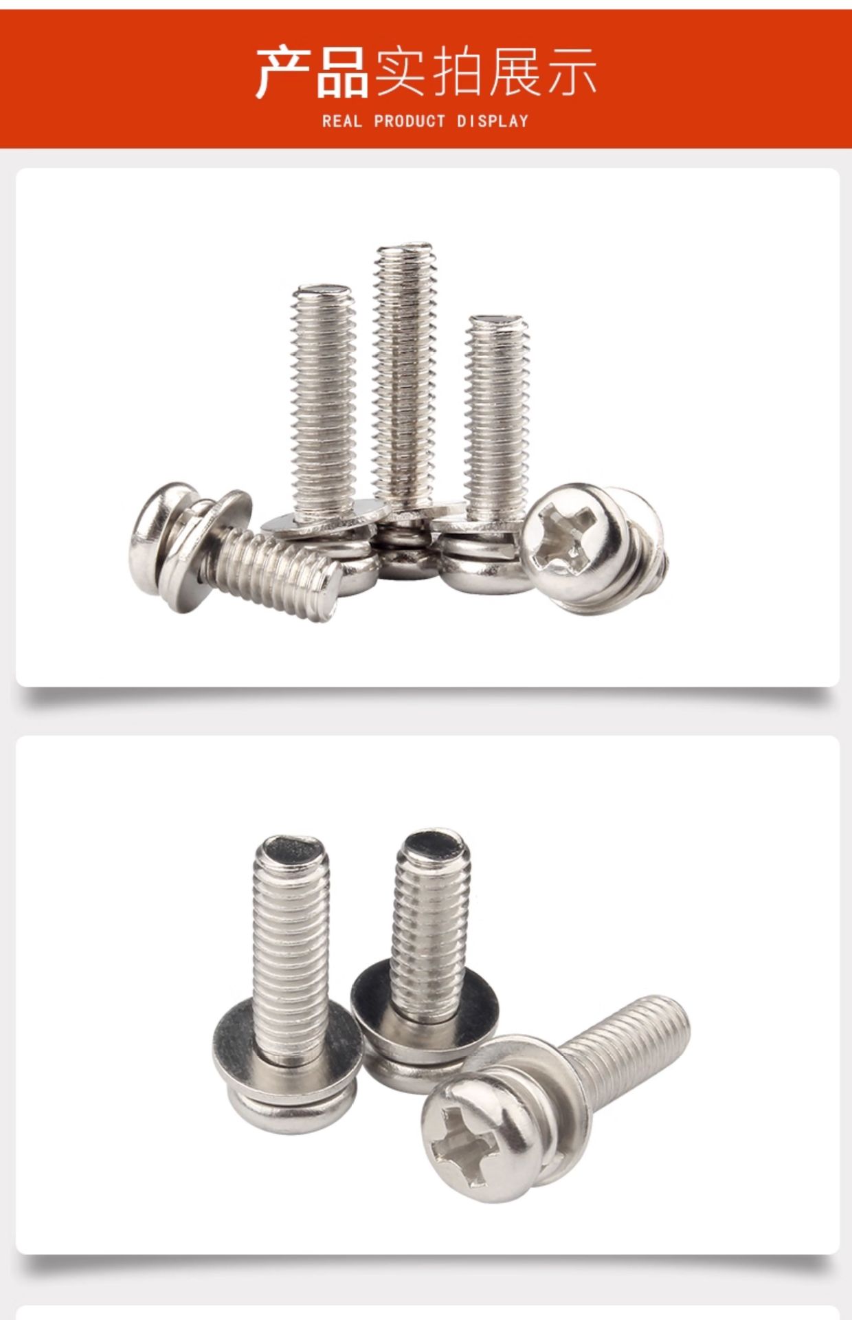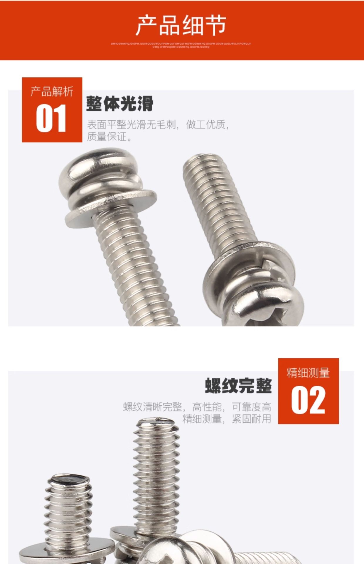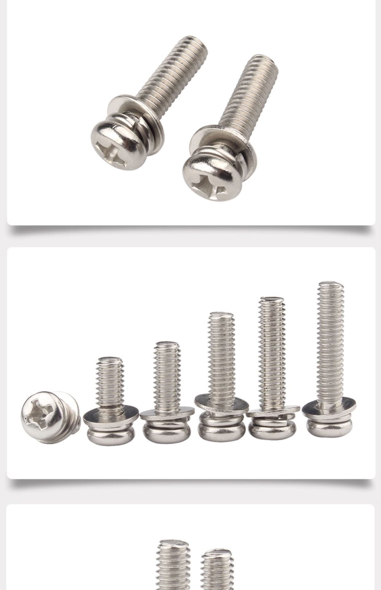 Tornillo de tres piezas de cabeza redonda cruzada niquelado cabeza plana con arandela plana perno de combinación de tornillo M2M2.5M3M4M5M6