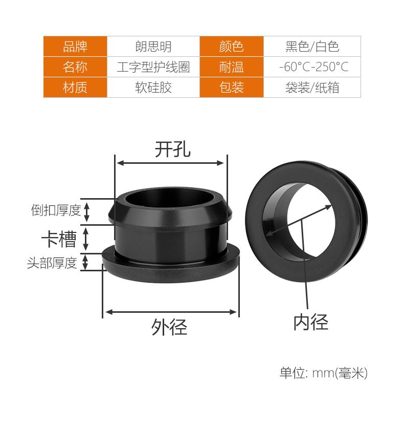Protector de Cable de Silicona Invertido de Doble Cara Manga Protectora en Forma de I Goma Agujero Redondo Perforado Pasacables a Presión