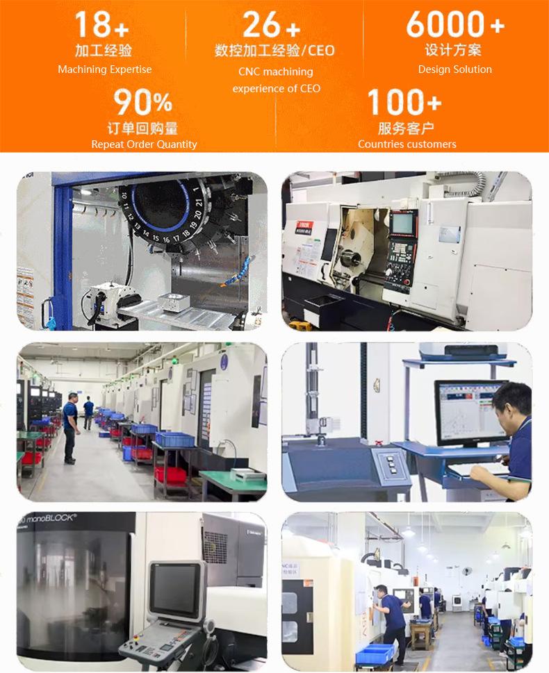El equipo principal incluye: CNC, torno CNC, torneado-fresado compuesto de alta velocidad, torno automático de 4 ejes, centro de mecanizado CNC de 5 ejes, con automatización