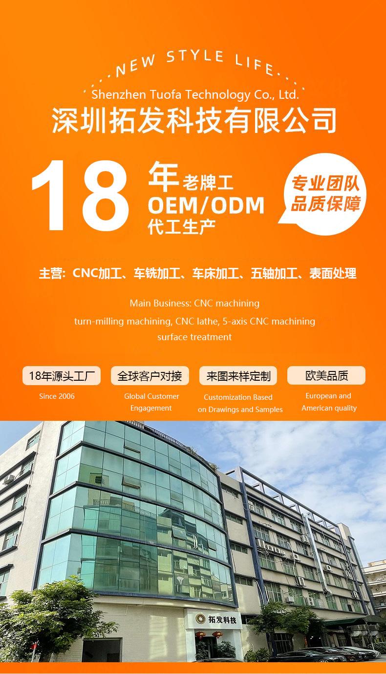 Shenzhen Tuofa Technology Co., Ltd. se estableció en 2006 y es una empresa orientada a la producción que se dedica principalmente al procesamiento de piezas de hardware de precisión.