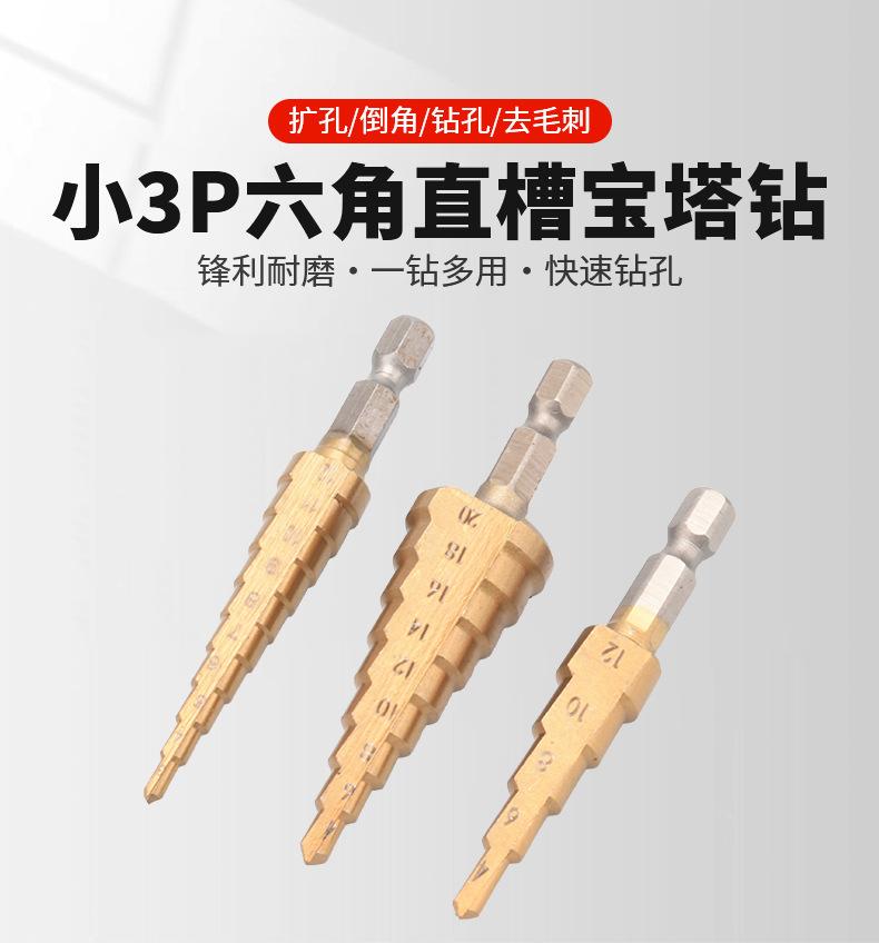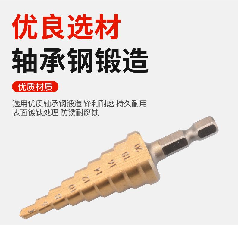 Ventas Directas de Fábrica Broca Pagoda Multifuncional Juego de Herramientas de Perforación para Taladro Eléctrico Mango Hexagonal Recubierto de Titanio Broca Escalonada para Expansión de Agujeros