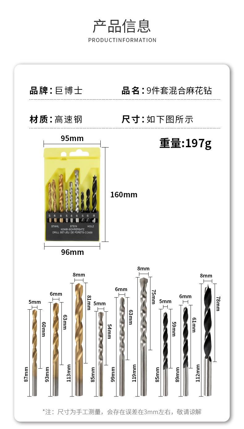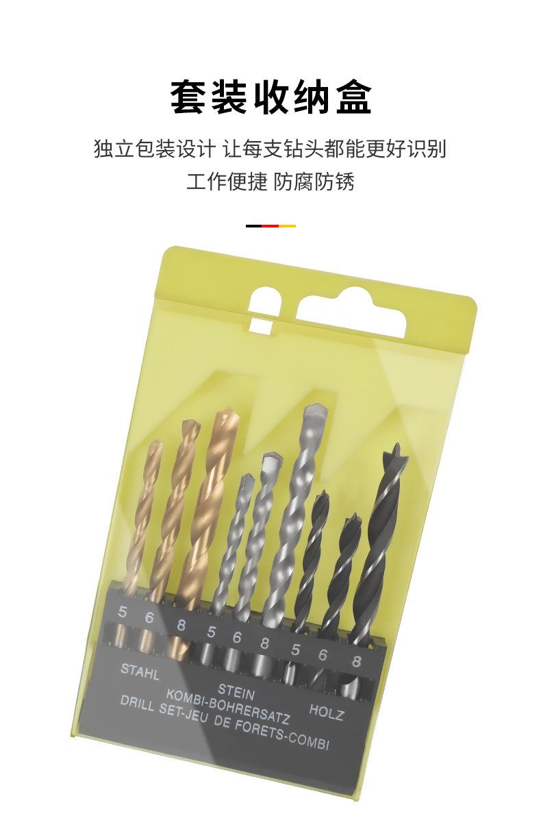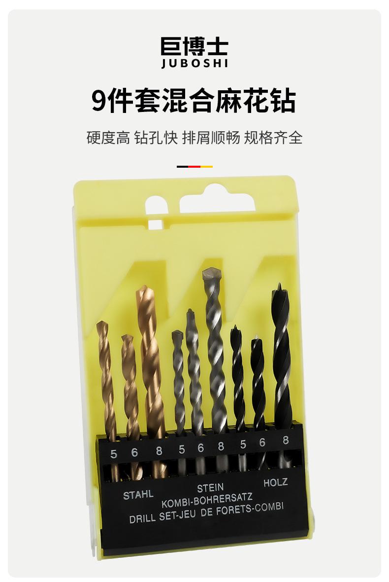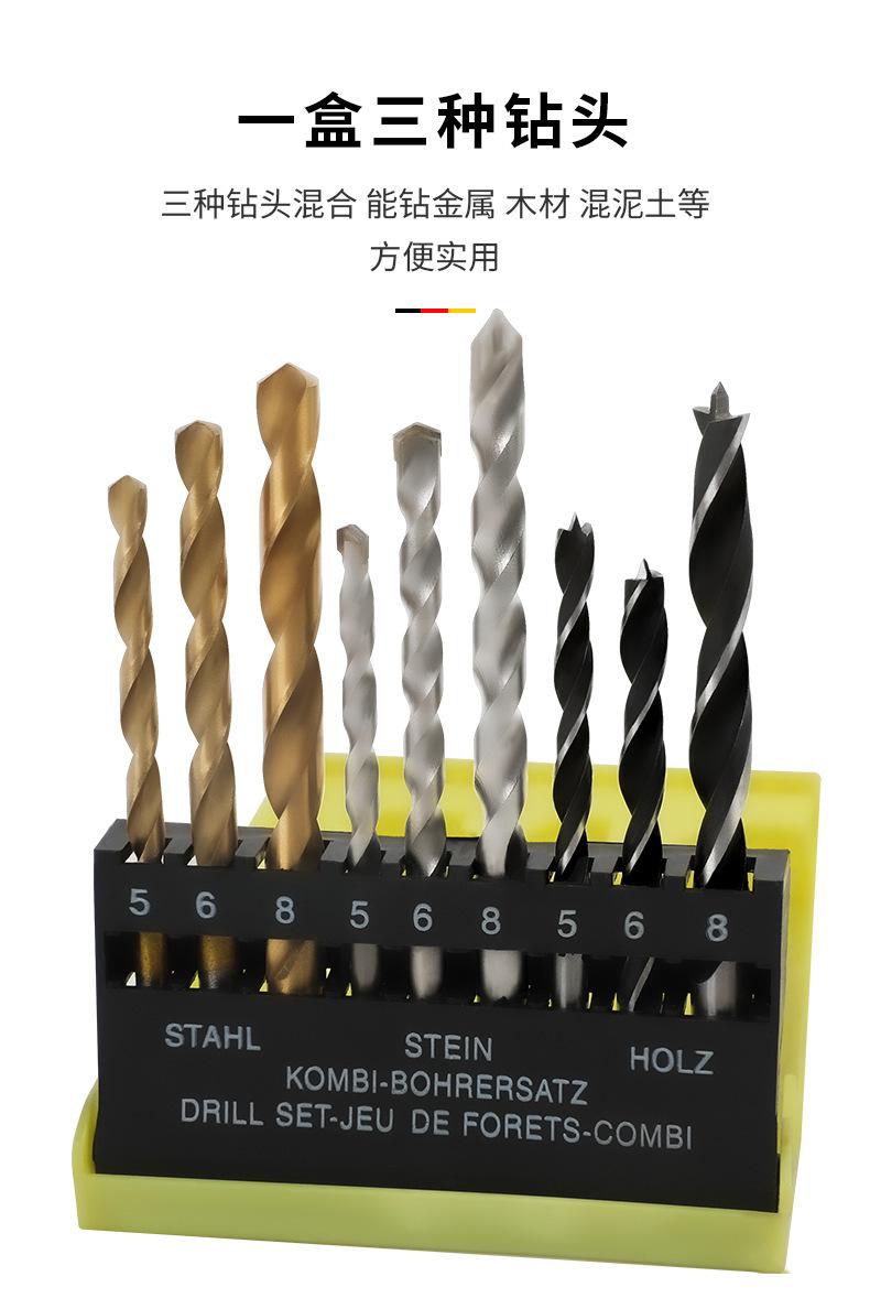 9-piece set【metal drill bit+wood drill bit+construction drill bit】
