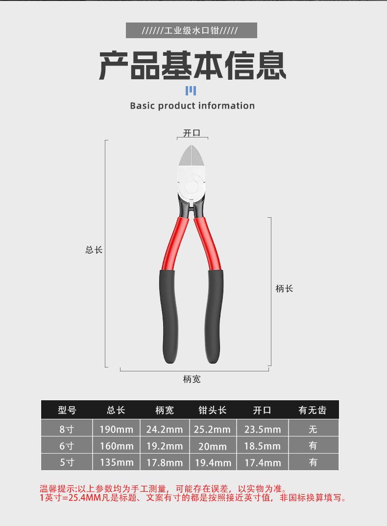 Pinzas de Boca de Agua Tijeras de Electricista Pinzas 6 pulgadas 5 pulgadas Grado Industrial Pinzas de Corte Diagonal Pequeñas Pinzas de Apertura de Boca Diagonal Desplazada Herramientas de Mano Pinzas para Cortar Alambre
