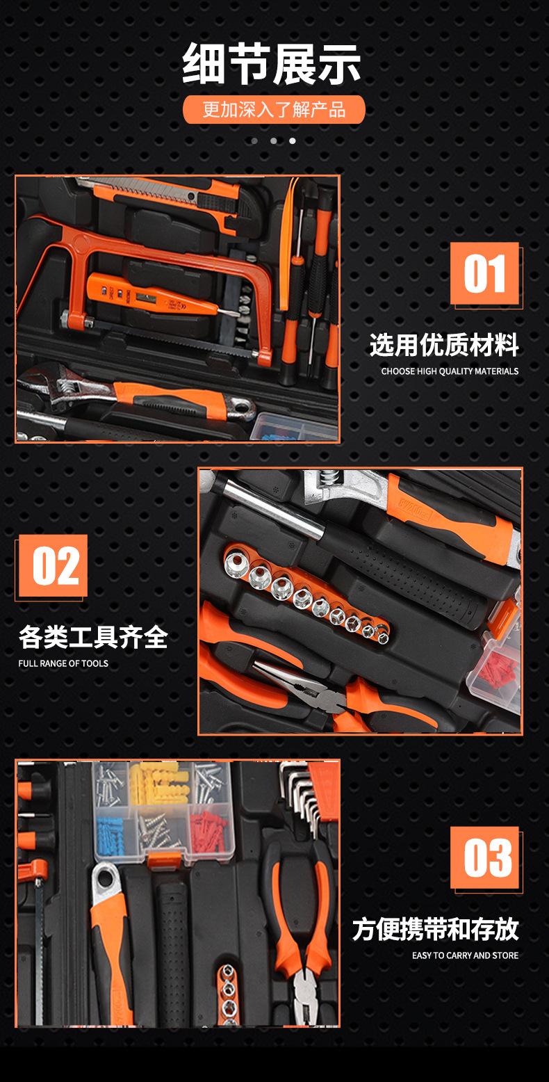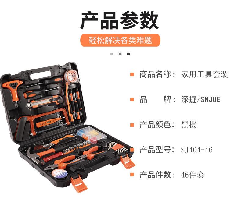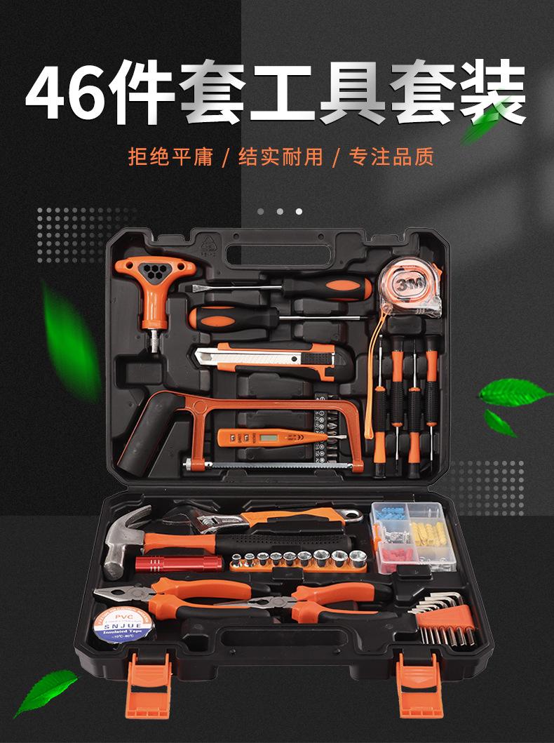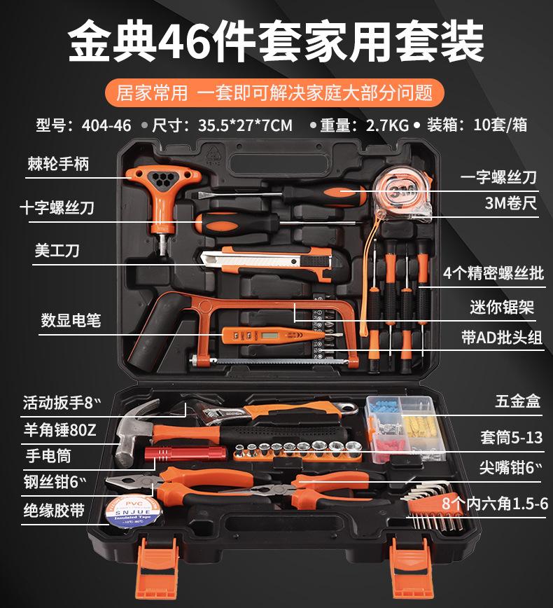 Juego de herramientas combinado de 46 piezas para el hogar de acero al carbono, caja de herramientas, juego de herramientas, destornillador, alicates, martillo, llave 404