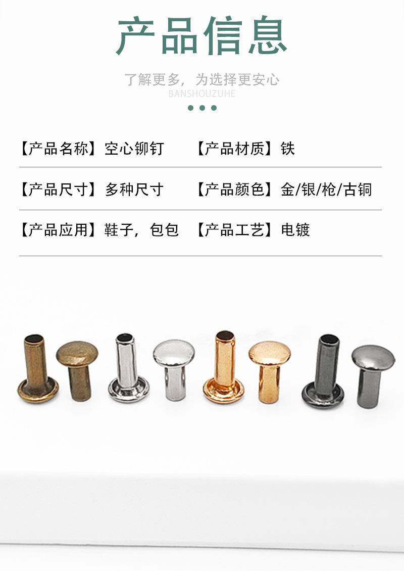 8x5mm gold hollow rivets, 8x5mm silver hollow rivets, 8x5mm gunmetal hollow rivets, 8x5mm antique bronze hollo...