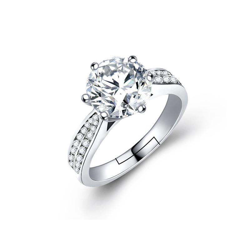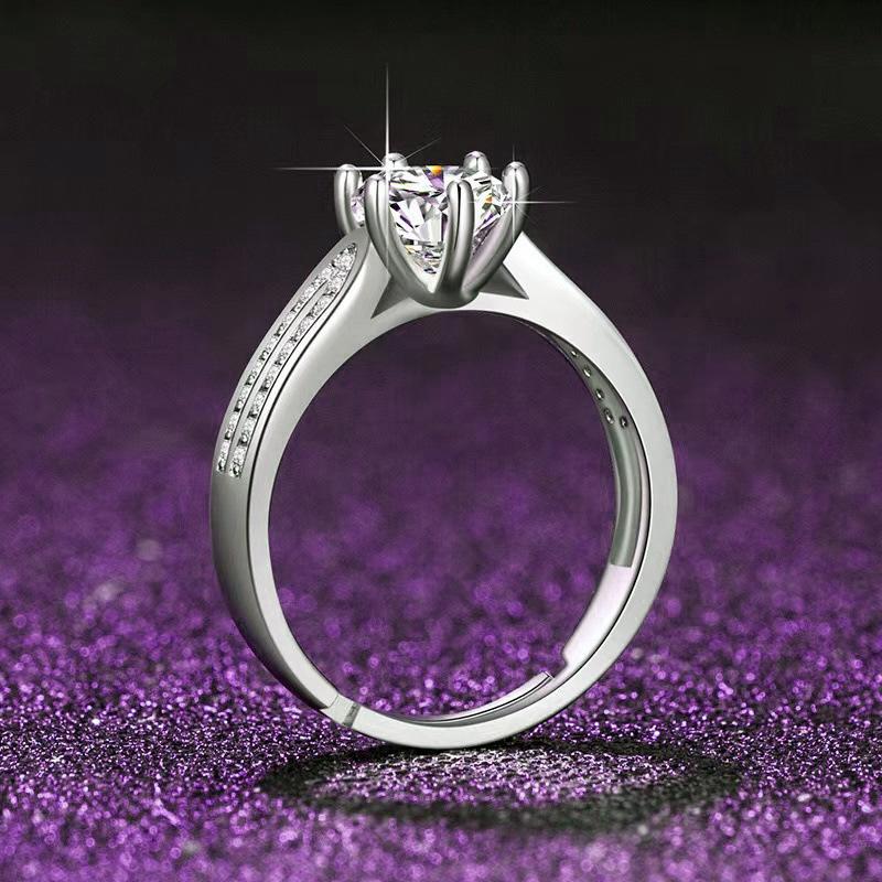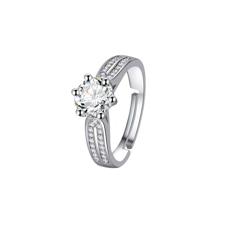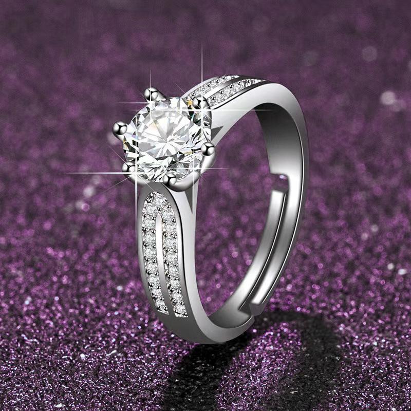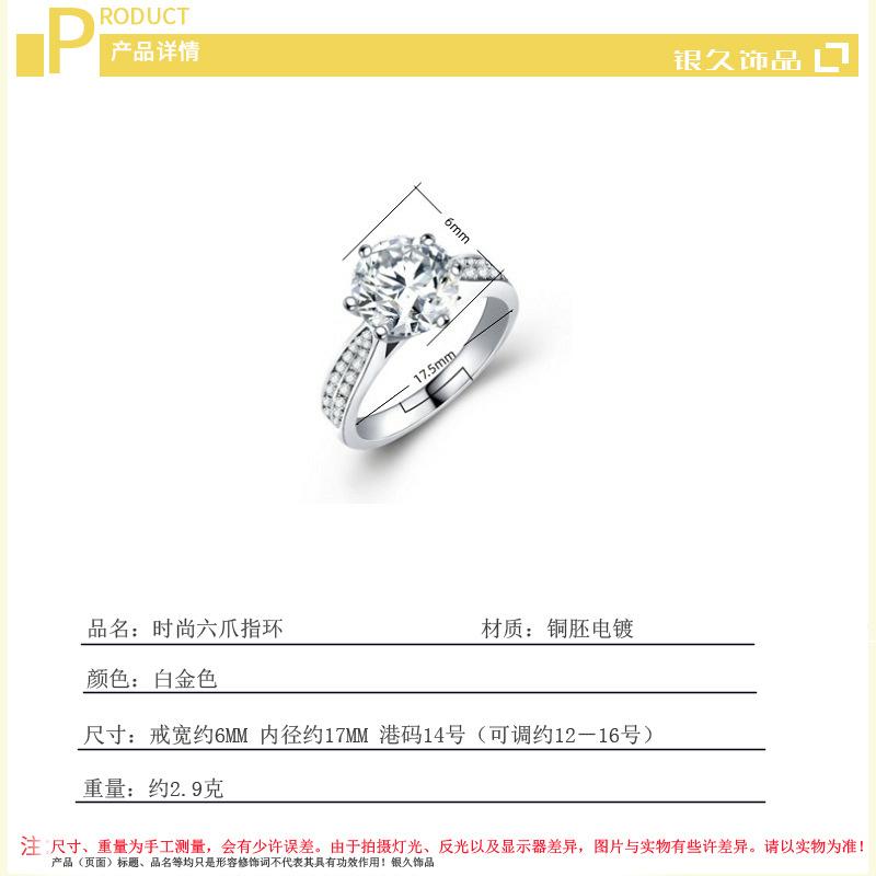 Anillo de bodas de moda de seis garras estilo coreano diseño de personalidad rojo de internet doble fila con incrustaciones de circonitas suministro de comercio electrónico