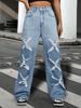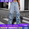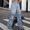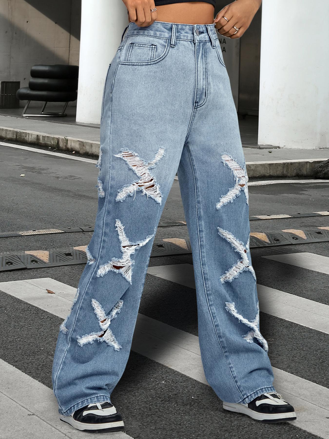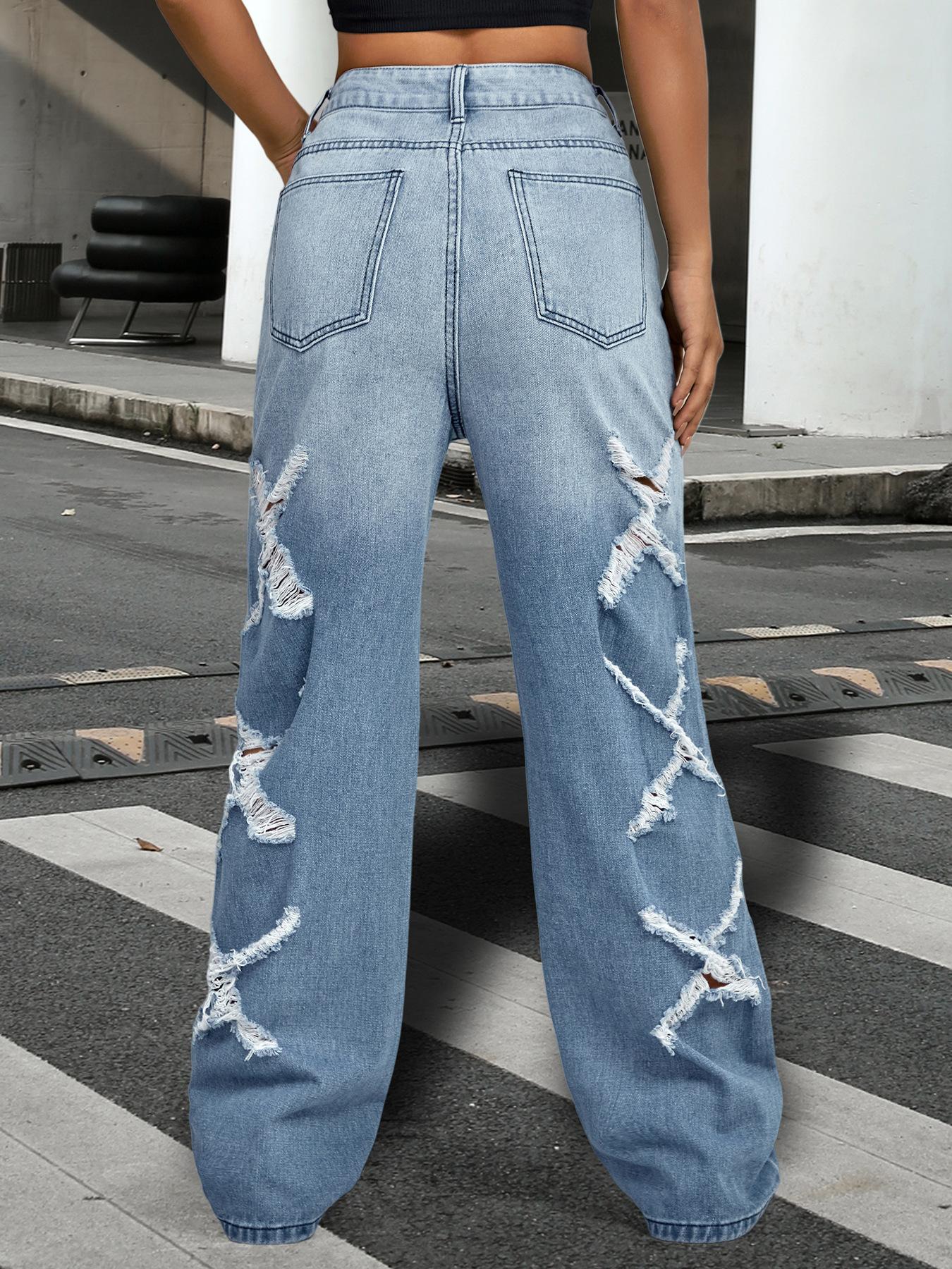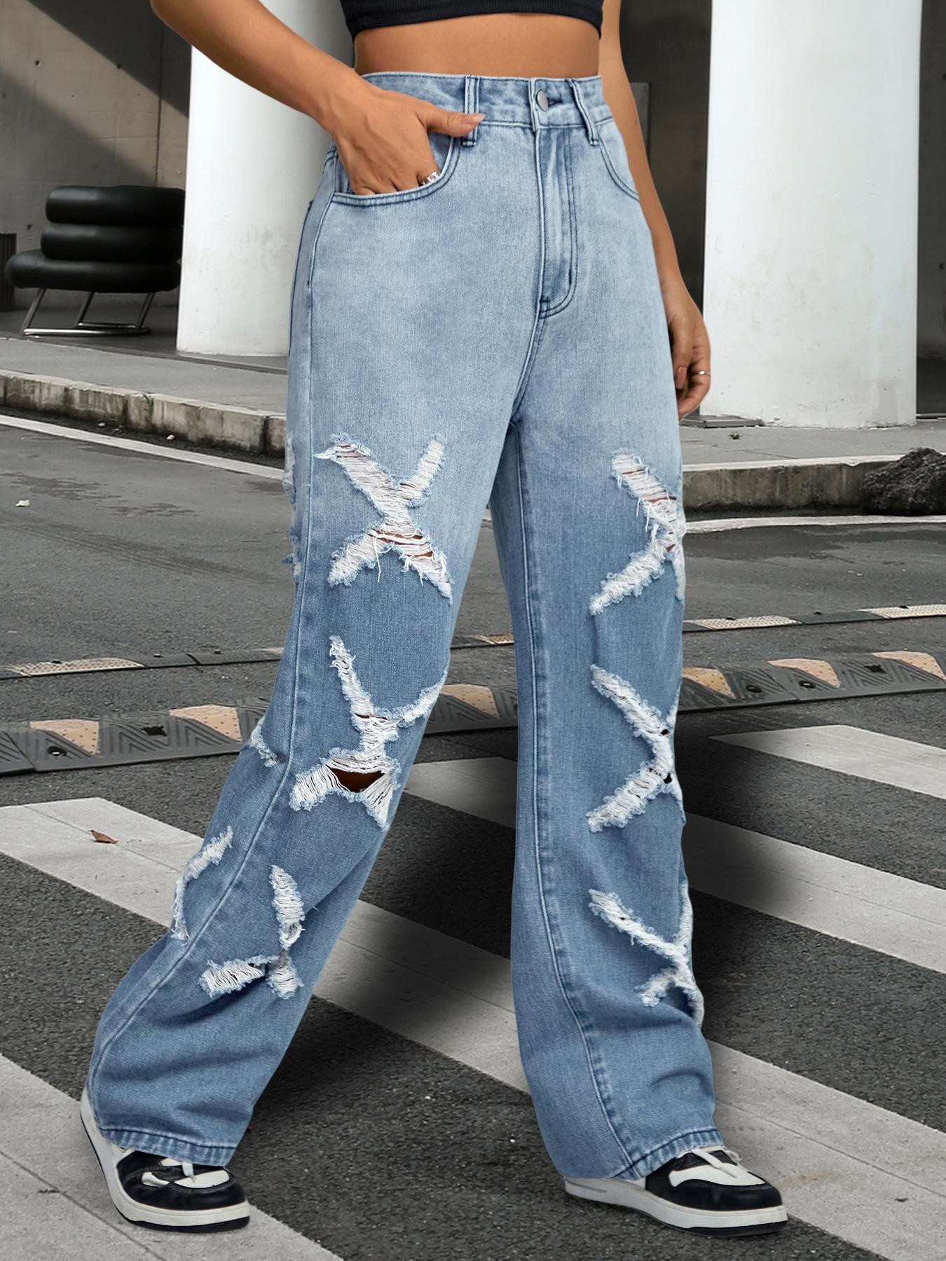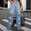 2023 Europeo y Americano transfronterizo Amazon estación independiente Nuevo pantalón recto elegante lavado rasgado pantalón de pierna ancha jeans para mujer