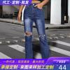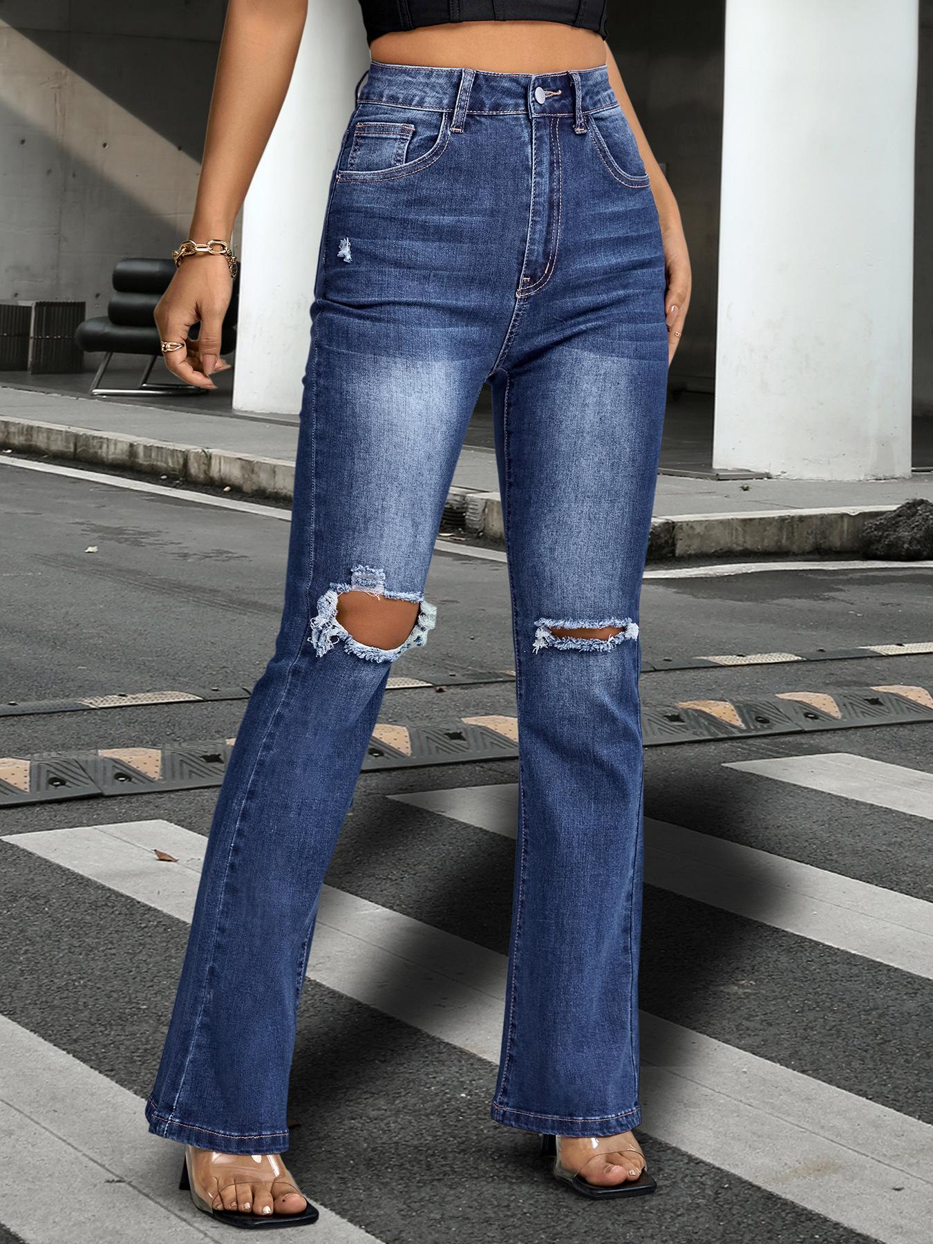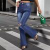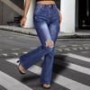 Pantalones acampanados de 2023 Europeos y Americanos Transfronterizos Amazon Sitio Independiente Lavados Rotos Jeans Slim-Fit Jeans Adelgazantes de Cintura Alta para Mujer