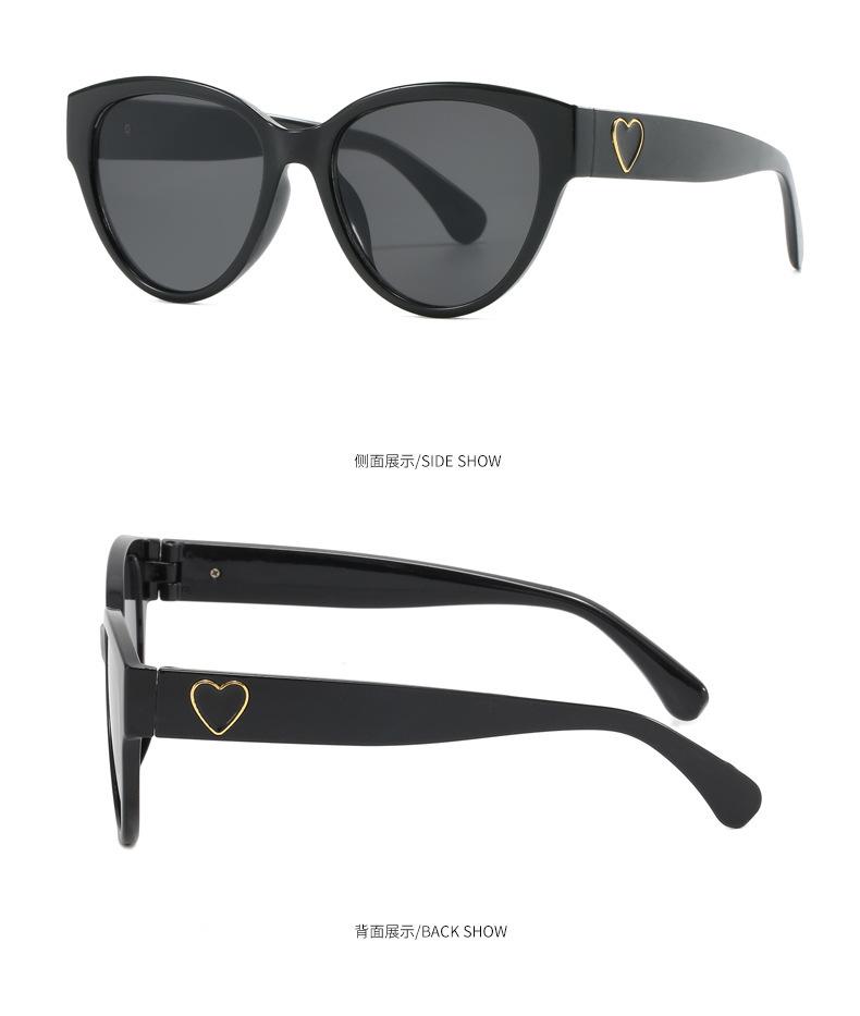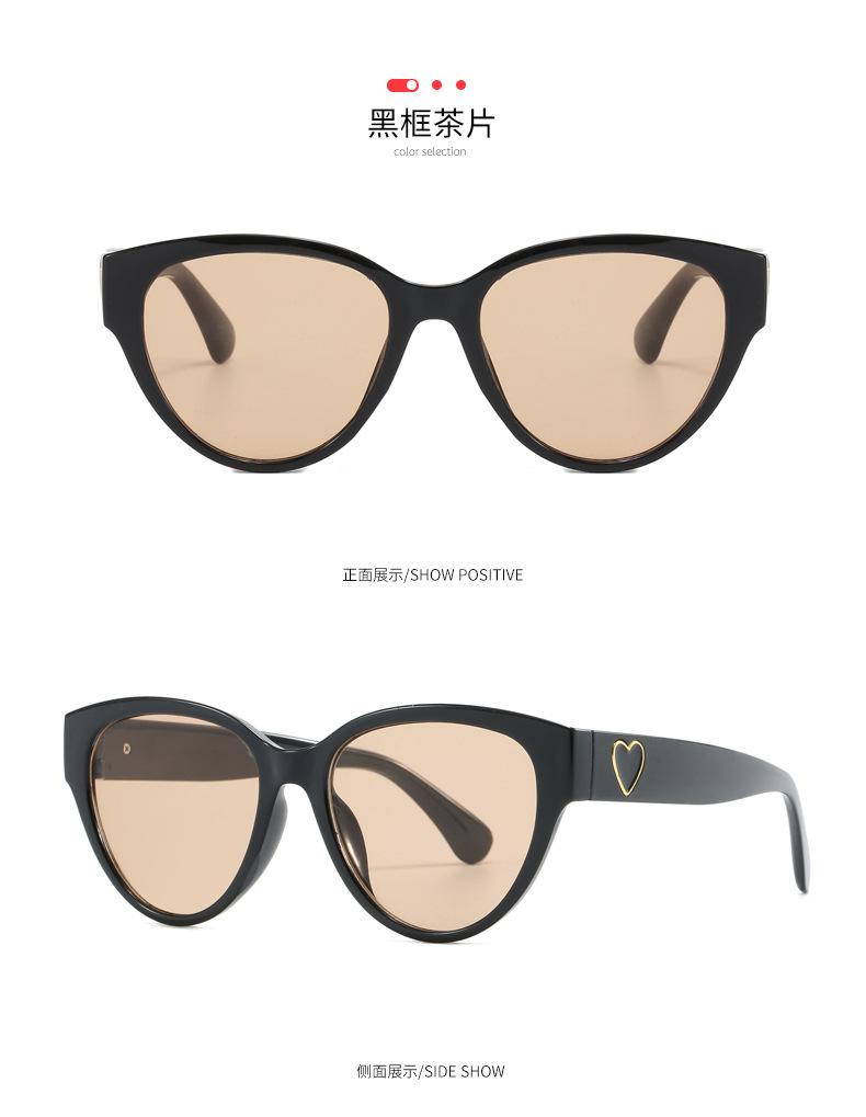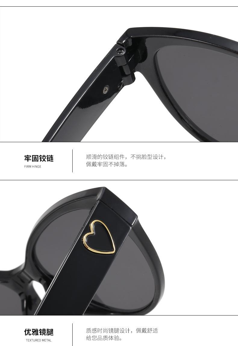 Gafas de Sol Retro Ojo de Gato Negras Amor para Mujer Celebridad de Internet Anti-UV Sentido Avanzado ins Cara Redonda-