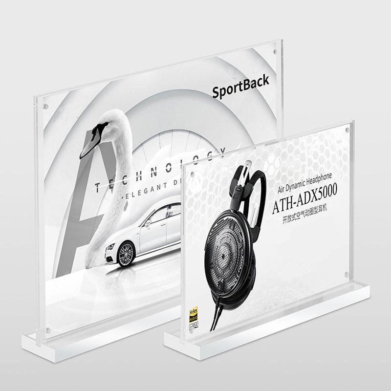 Acrílico Transparente Fuerte Magnético Tarjeta de Mesa Escritorio Tarjeta de Exhibición Publicitaria Tarjeta de Pie en Forma de T Tarjeta de Mesa Acrílica de Doble Cara