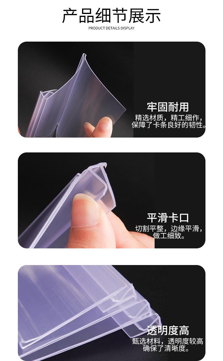 Estante de supermercado personalizado de fábrica Barra de etiquetas a presión Tienda de conveniencia Tarjeta transparente de PVC Exhibición de productos Etiqueta de precio