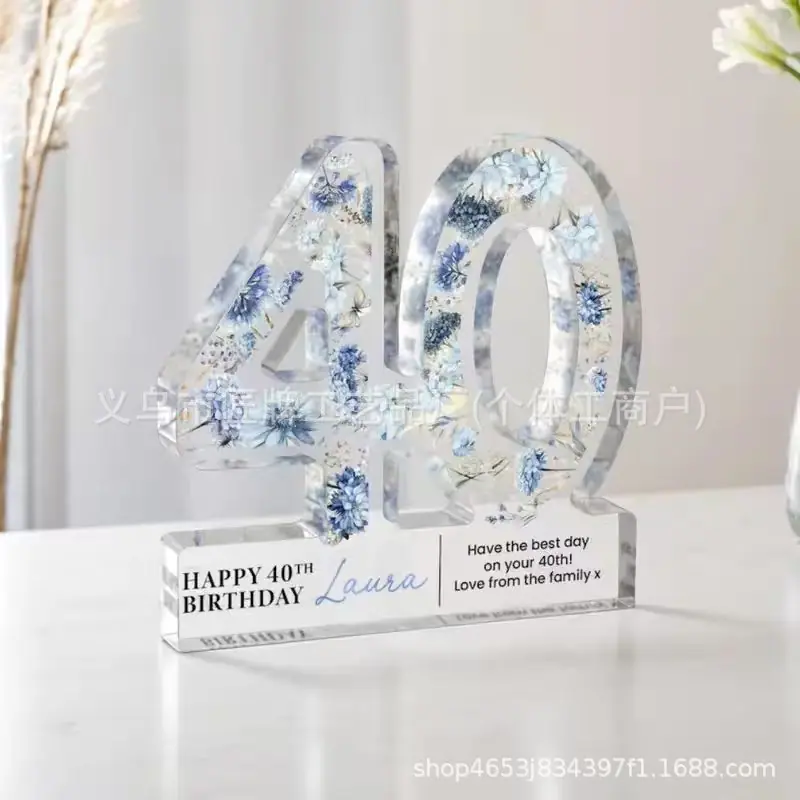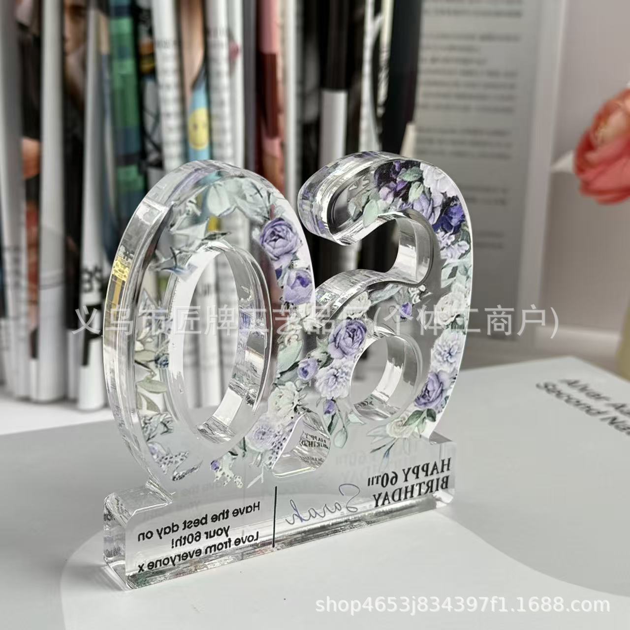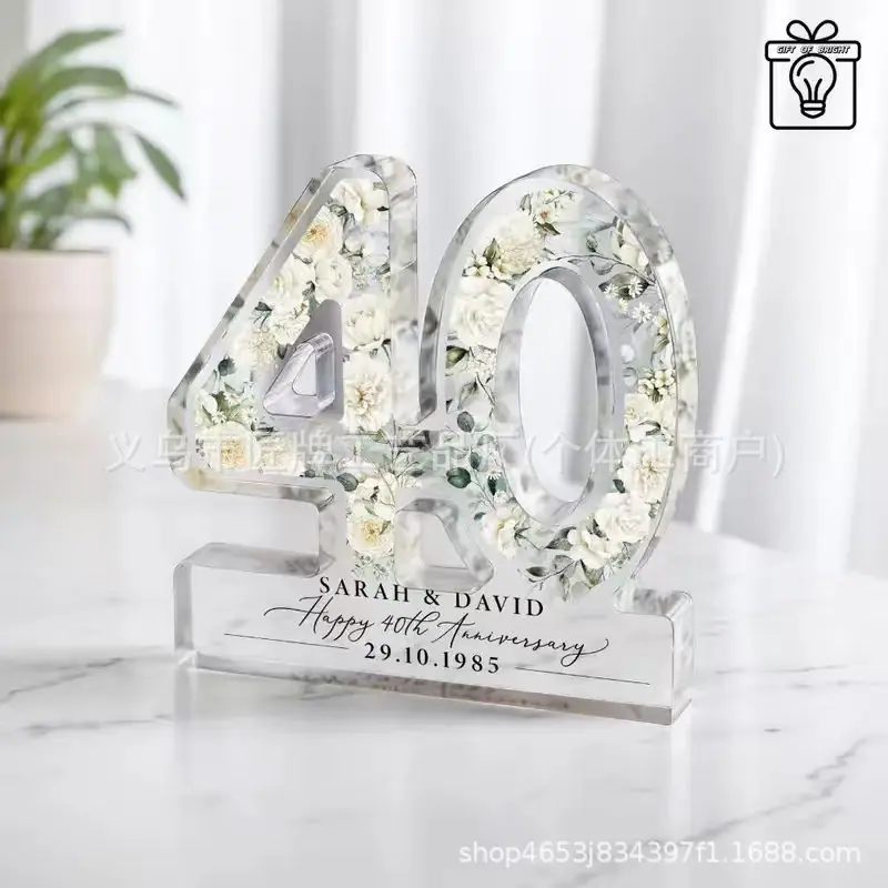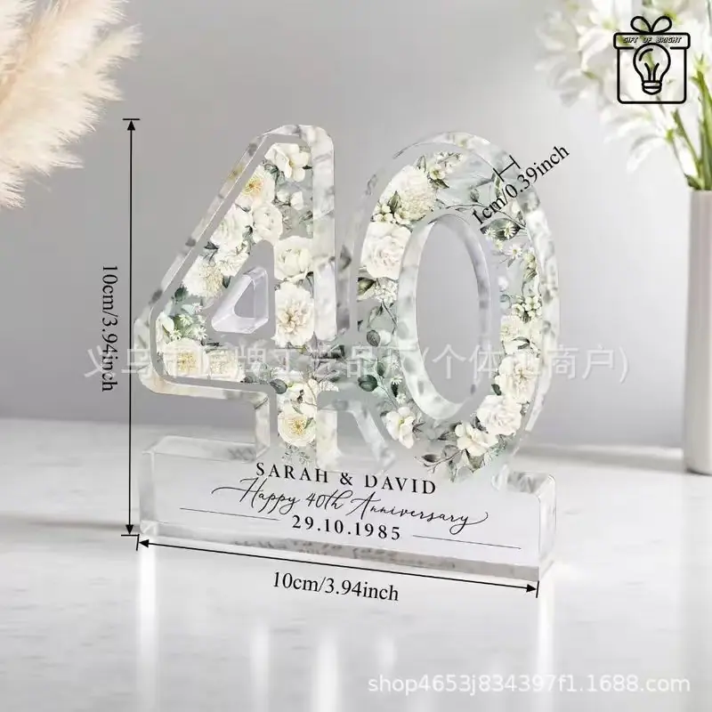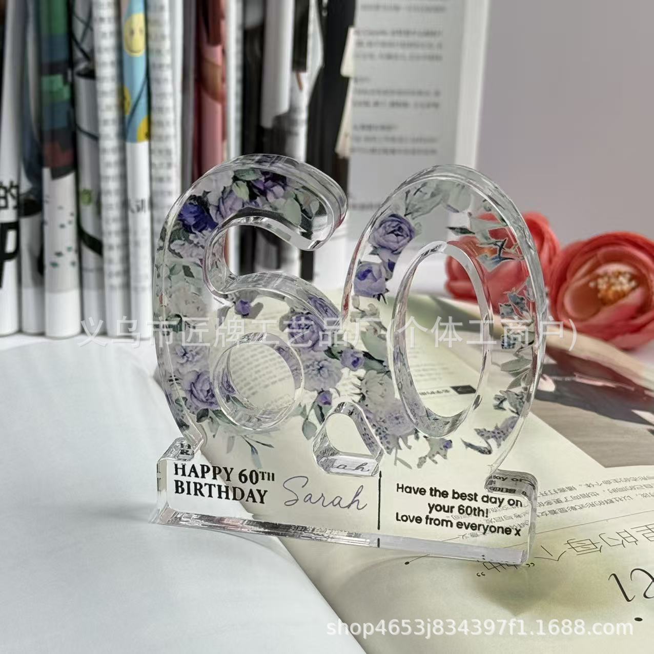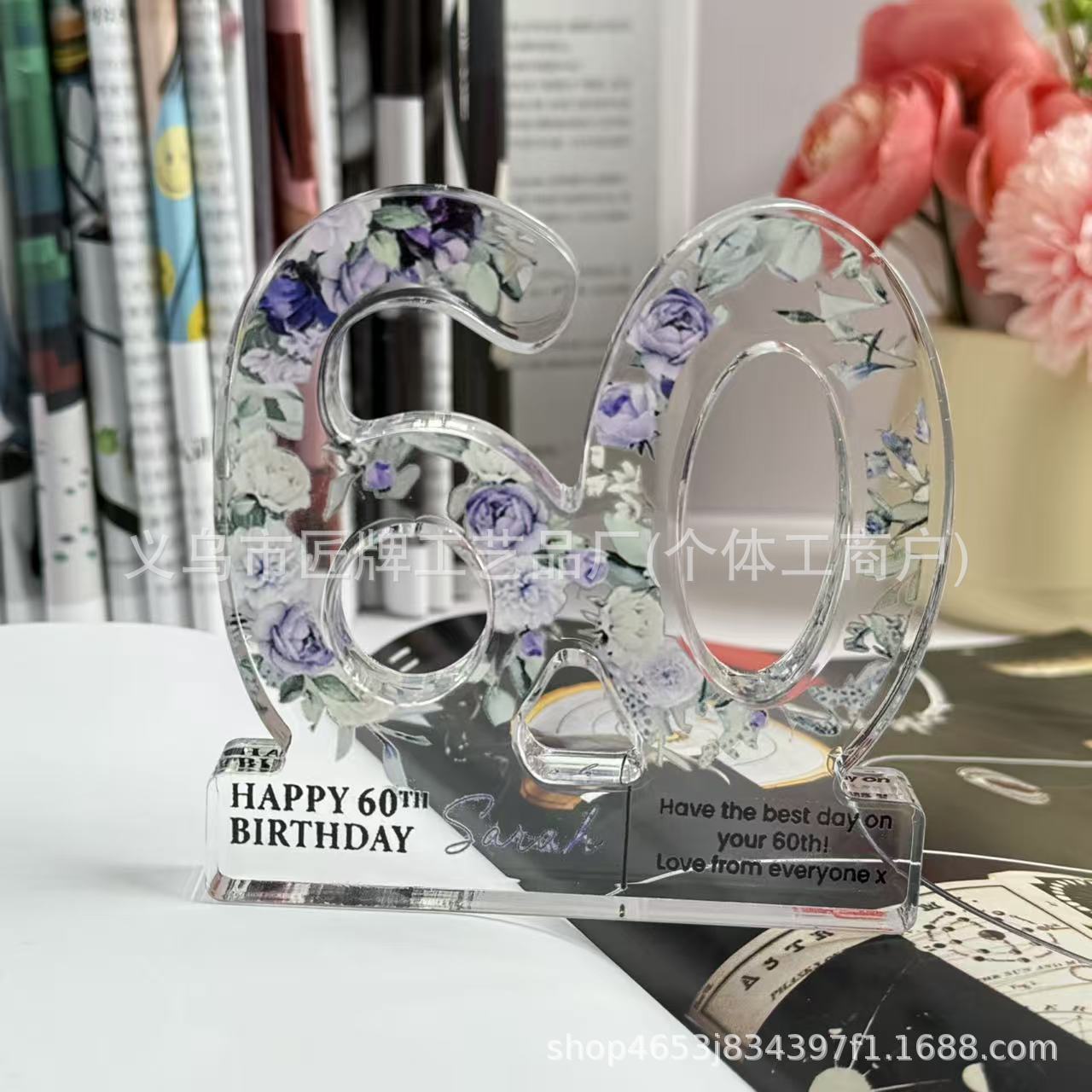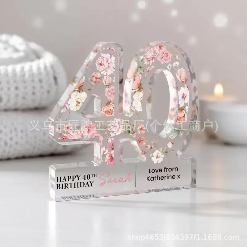 Amazon Nuevo Acrílico de Alta Calidad Regalo Conmemorativo para Madre Diseño de Flores Rosa-Morado y Blanco Regalo de Aniversario