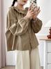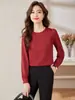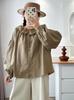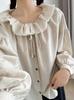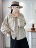 Otoño 2025 Nuevo Camisa Casual Holgada Adelgazante de Manga Larga Cuello con Volantes Lazo Reductor de Edad Blusa Babydoll al Por Mayor