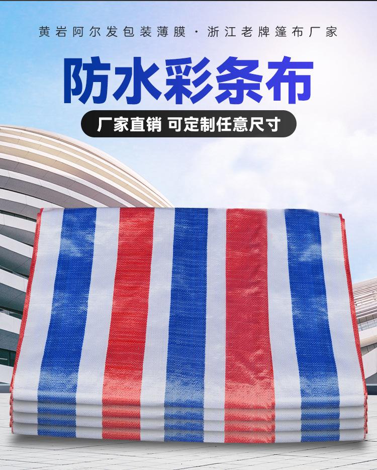 Lona de plástico tejido de PE a rayas de tres colores, lona, protección solar, tela impermeable, sombrilla impermeable, tela gruesa a rayas