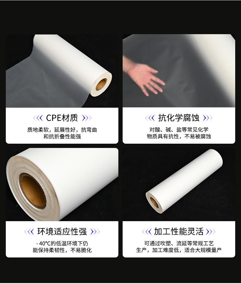 Color Primario Película Fundida de CPE Escarchada Venta al por Mayor Película de Embalaje Transparente Blanca Plástico Resistente a Altas Temperaturas Rollo Material Fuente Fabricante