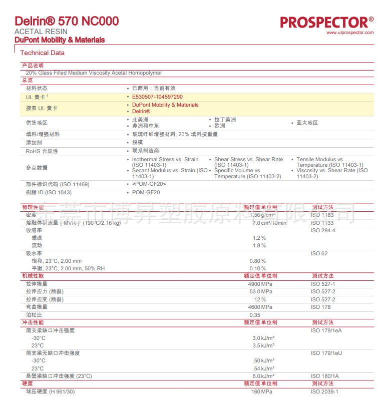 Pom American Dupont 570 Nc010 Fibra de Vidrio Gf20% Mejorado Alta Resistencia Resistencia a Alta Temperatura Resistencia al Desgaste Acero