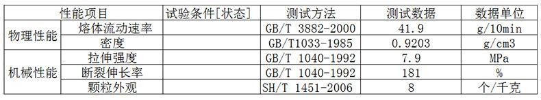 Propiedades físicas | La tasa de flujo de fusión | GB/T 3882-2000 | 41.9 | g/10 min | ||