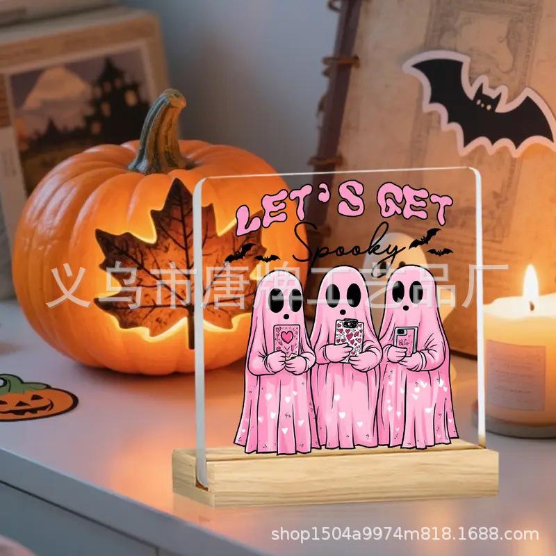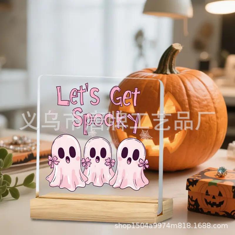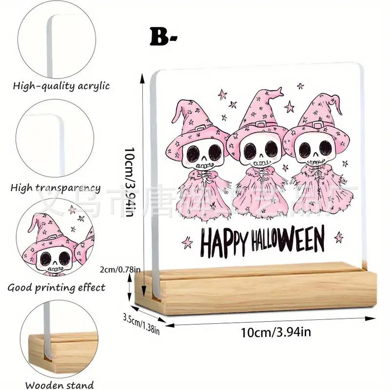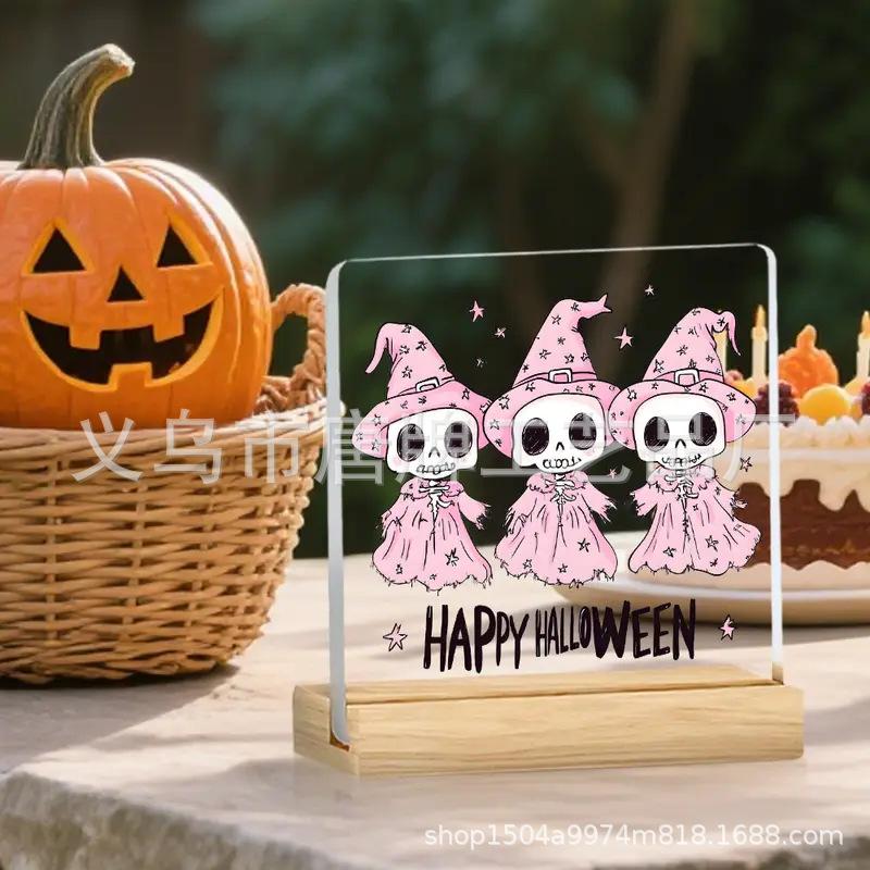 Nueva Decoración de Escritorio Acrílico Transparente Cuadrado Transfronterizo de Halloween Navidad Adorno para Familiares y Amigos