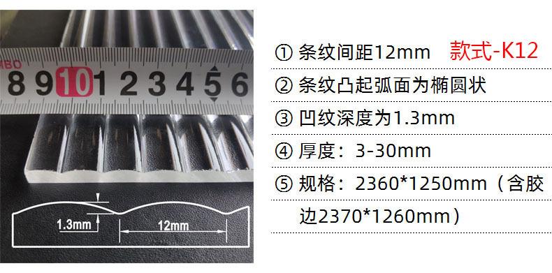 Lámina Acrílica Transparente con Rayas Láser en Stock del Fabricante Lámina Acrílica Corrugada Lámina de Aislamiento Patrón de Rayas Largas