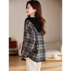 Abrigo de Lana para Mujer 2025 Otoño/Invierno Nuevo Estilo Coreano con Capucha Casual Suelto Talla Grande Temperamento Grueso Abrigo de Pata de Gallo