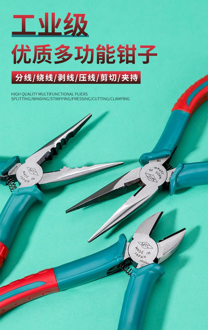 Pinzas Multifuncionales Domésticas Continentales Mordaza Alicates de Punta Alicates de Electricista Herramientas de Ferretería para el Hogar Pelacables Cortacables